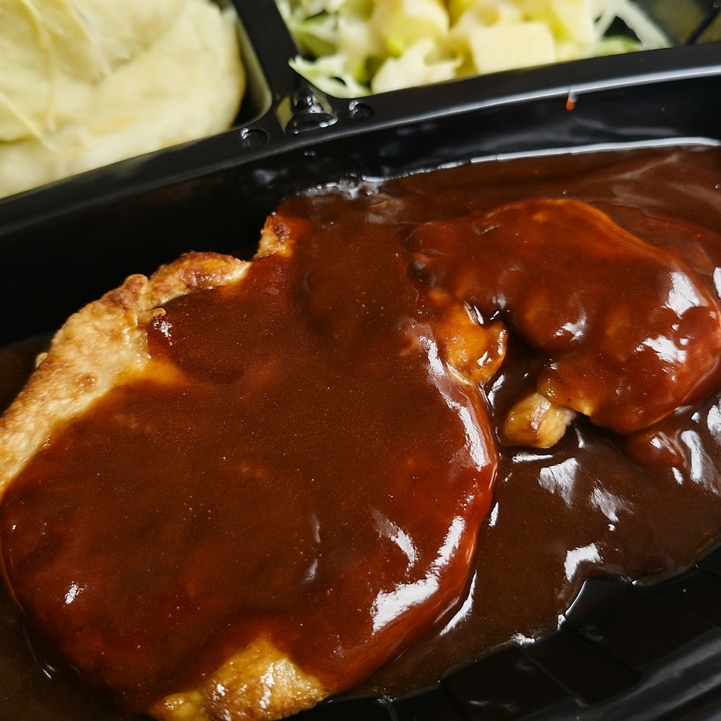 Lomo de cerdo asado a la parrilla bañado en salsa BBQ, acompañada de papa francesa a la paprika, ensalada y salsas especiales de la casa.