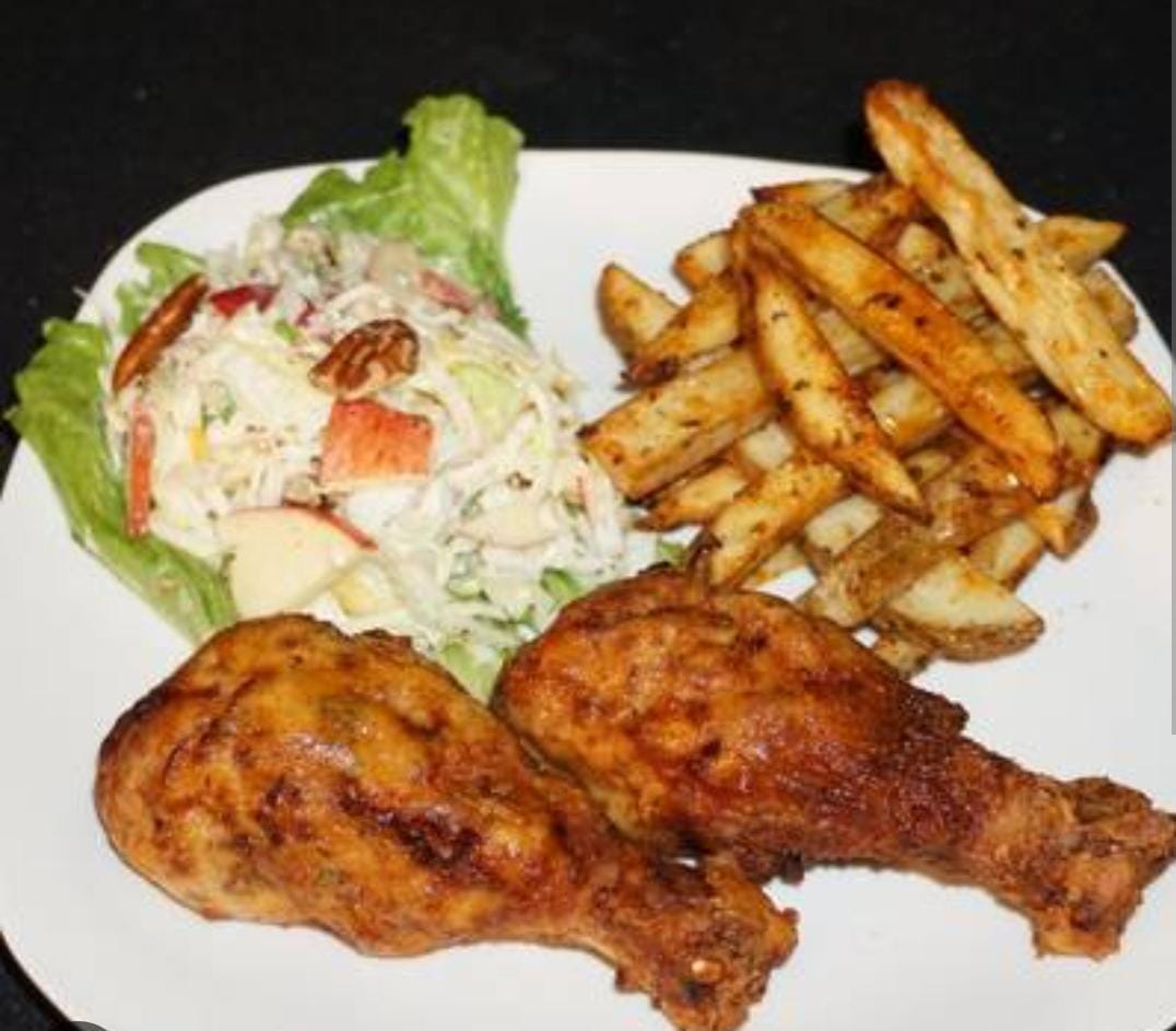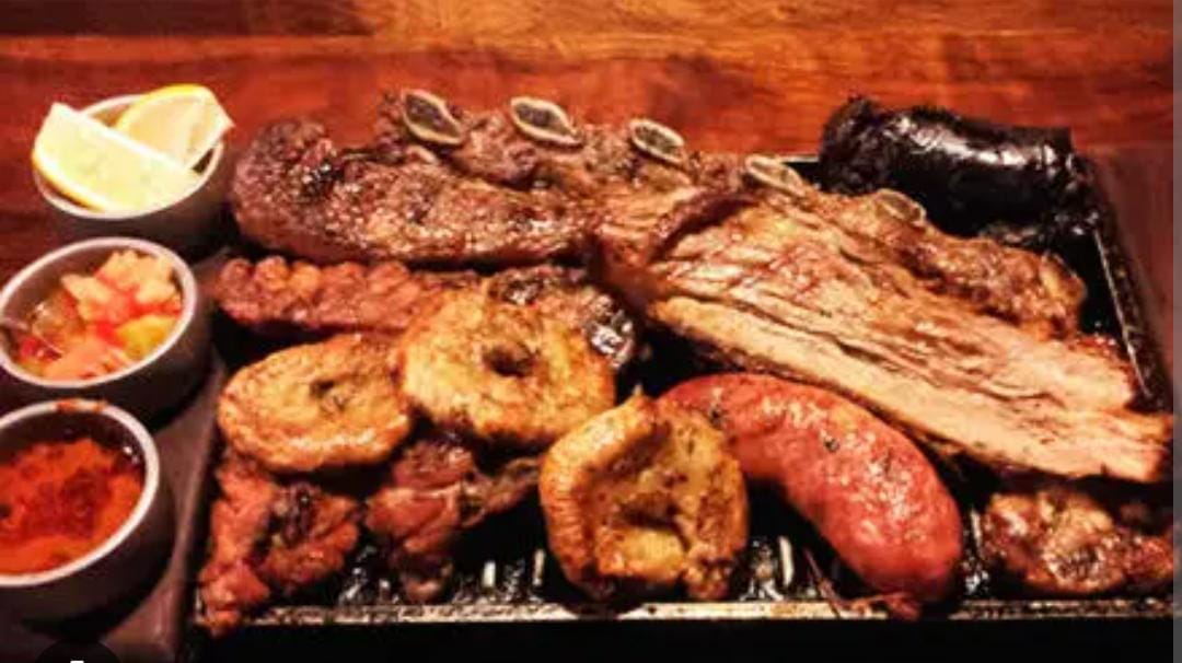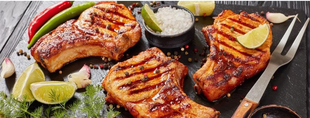 100gr de cerdo bañado en salsa BBQ, acompañada del menú del día en arroz, ensalada, granos, contorno, 12 onzas de sopa y bolsa de jugo.
