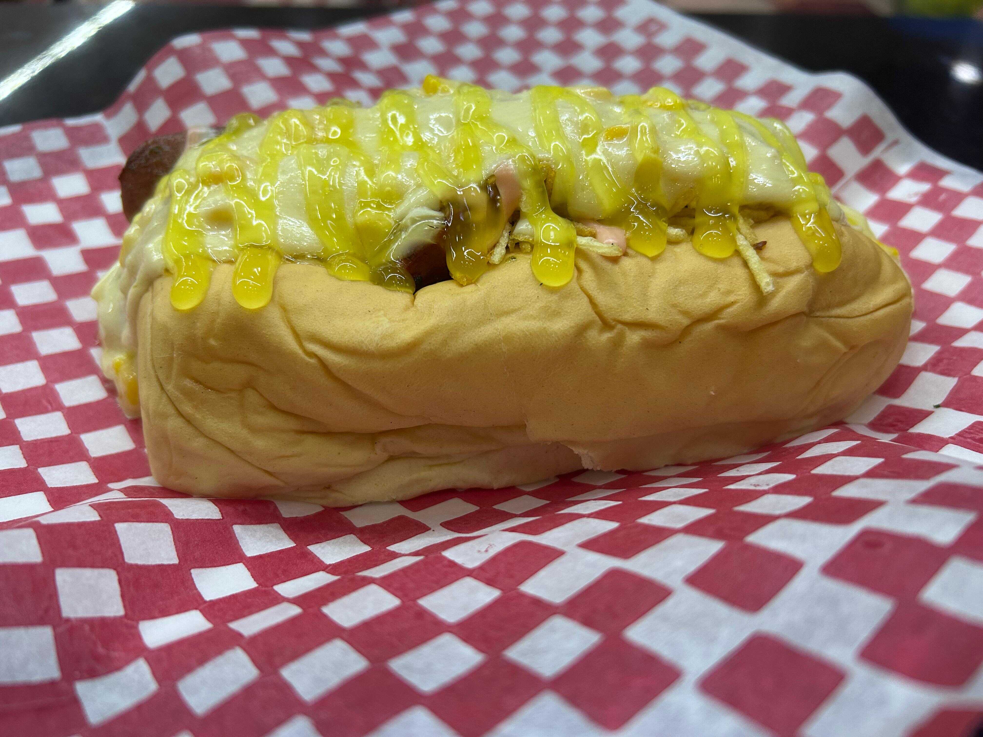 Perro caliente estilo suizo.