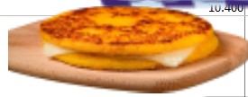 Arepa de maíz blco con queso asada a la plancha rellena. con 60g de tocineta