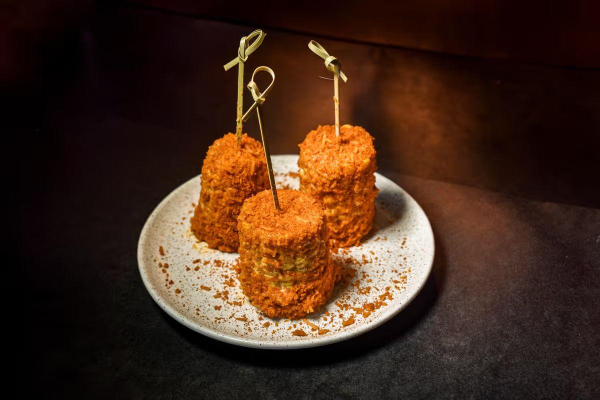 3 Mazorquitas dulces acompañadas con queso parmesano y salsa de la casa.