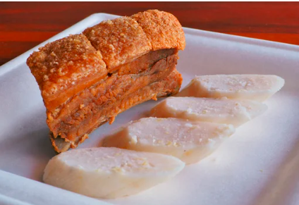 Costilla de cerdo con capa de piel crocante acompañado de bollo limpio de 350 g. aprox