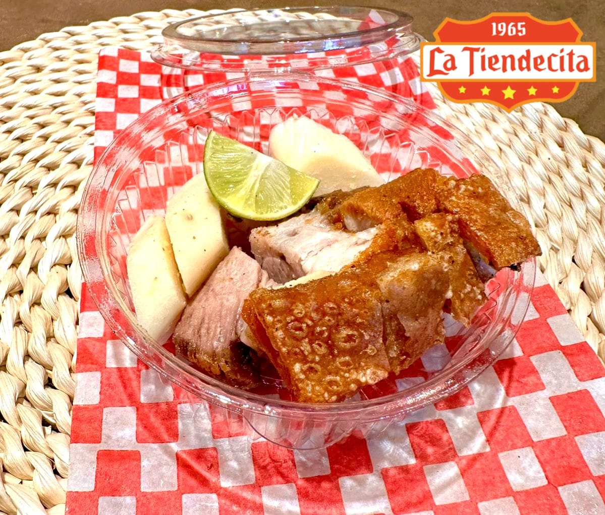 Deliciosos trocitos de cerdo picados acompañado de bollo limpio 120 gramos.