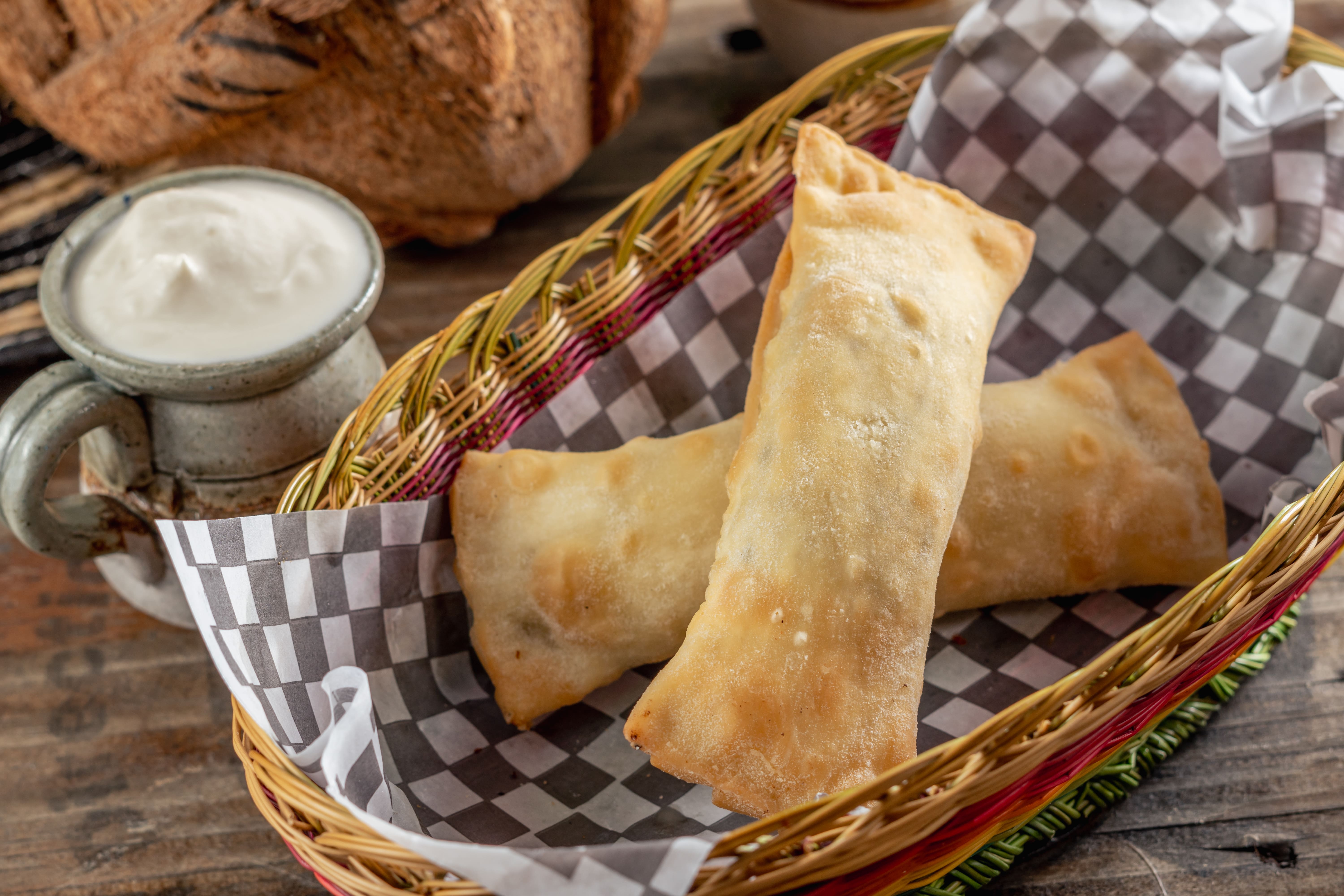 Carimañola crujiente rellena con queso costeño. Sabor auténtico del Caribe.