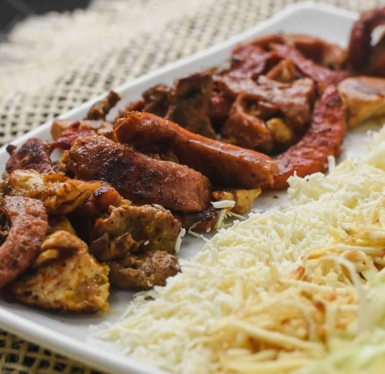 Pan artesanal del día, chorizos juliana, lechuga, queso costeño, papa chongo y salsas de la casa.