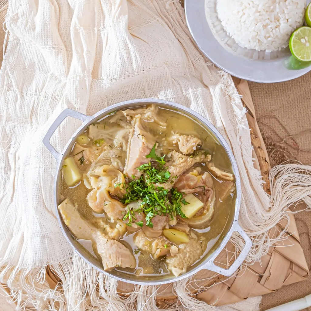 Delicioso Sancocho de Mondongo acompañado de Arroz Blanco y Limón.