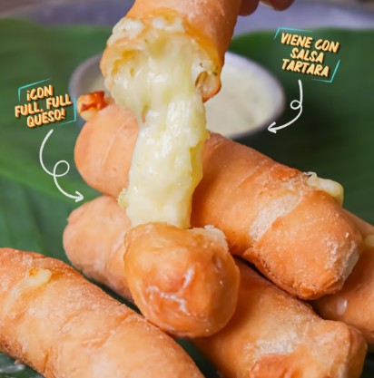 Deliciosos Deditos de Queso con salsa de la casa, especial para picar y compartir.