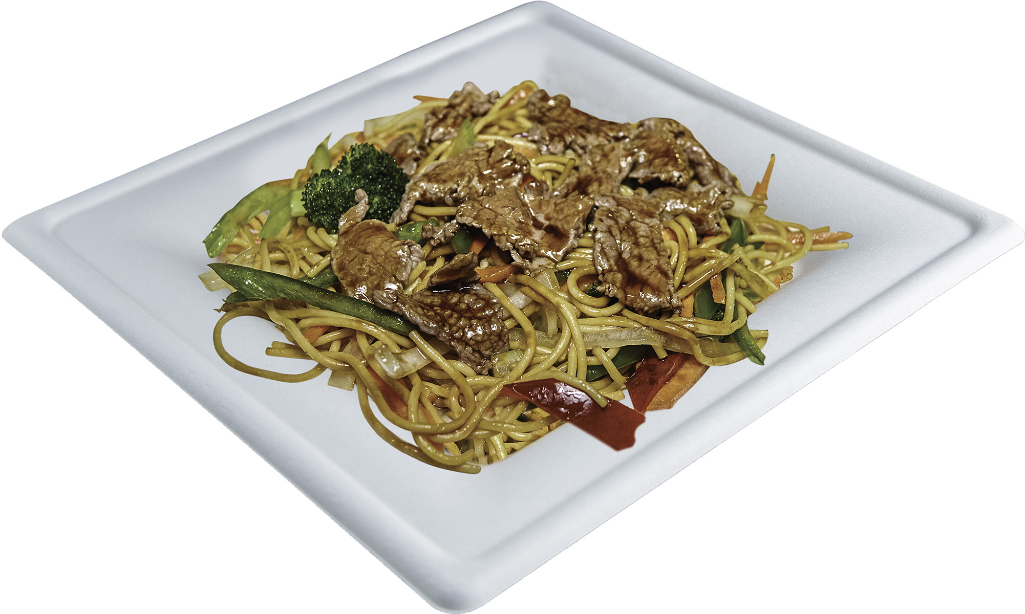 Pasta especial con carne de res y vegetales en salsa teriyaki.