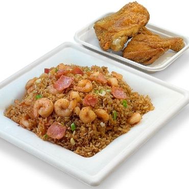 Delicioso arroz mixto para compartir en familia + medio pollo apanado, acompañante a elección (4 crocantes lumpias de la casa o una Coca-Cola de 1.5 L. Combo ideal para 4 personas.