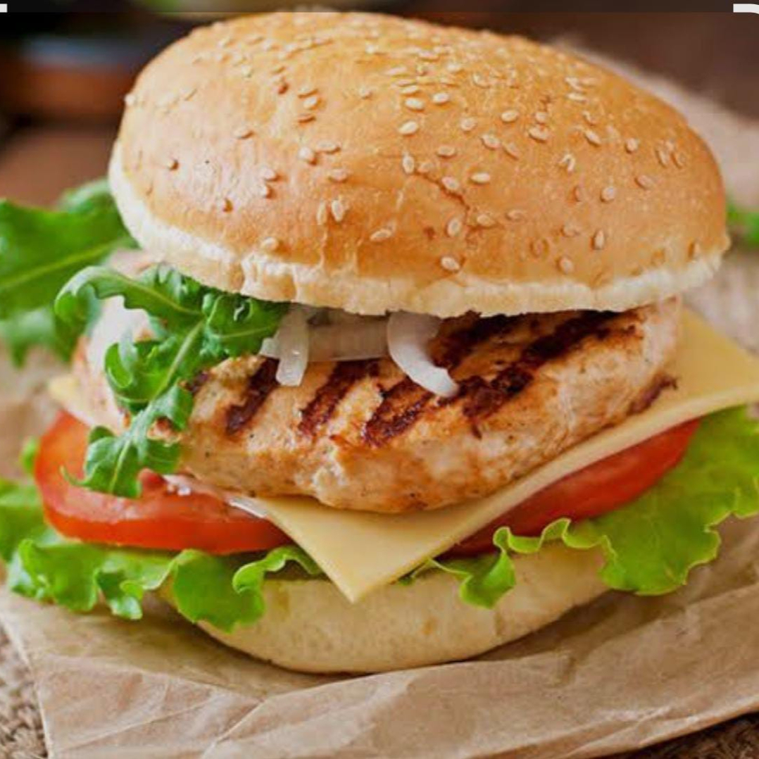 Jugosa pechuga de pollo preparada a la perfección, servida en pan artesanal con vegetales frescos.