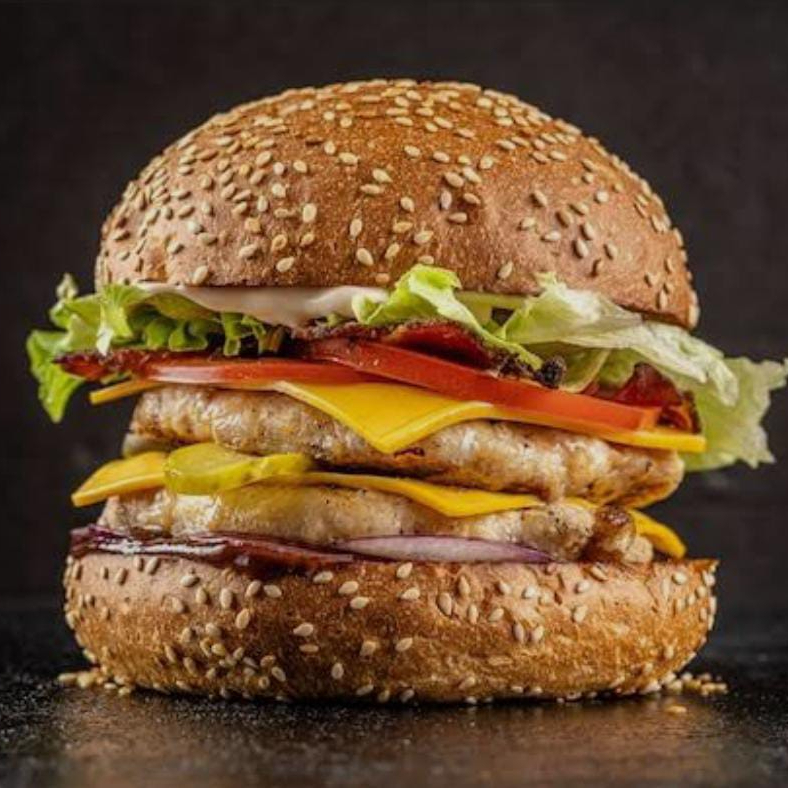El máximo nivel, doble pollo, tocineta extra, jamón y doble queso mozzarella.