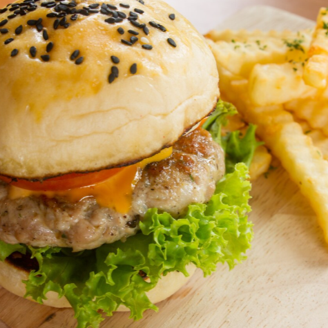 Tradicional hamburguesa con carne de res 100% seleccionada, asada en su punto y muy jugosa.