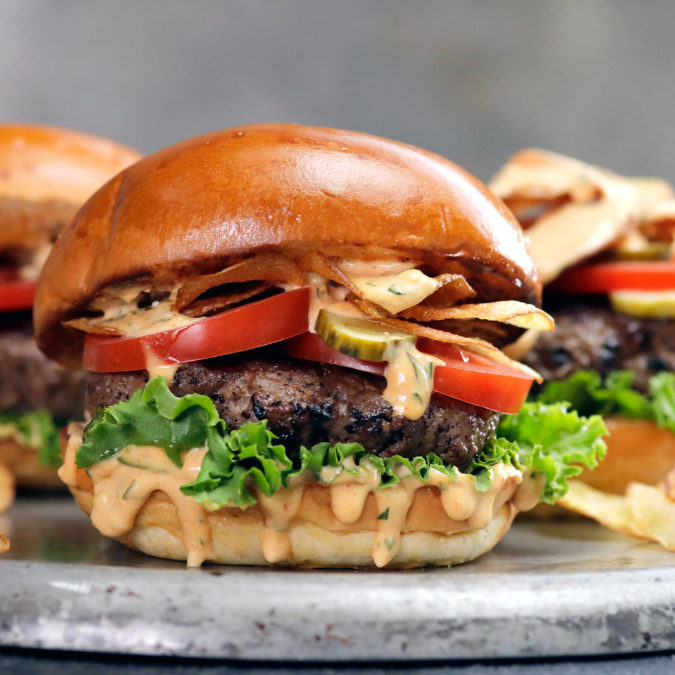 Lo mejor de ambos, jugosa carne de res, pollo tierno y doble queso mozzarella.