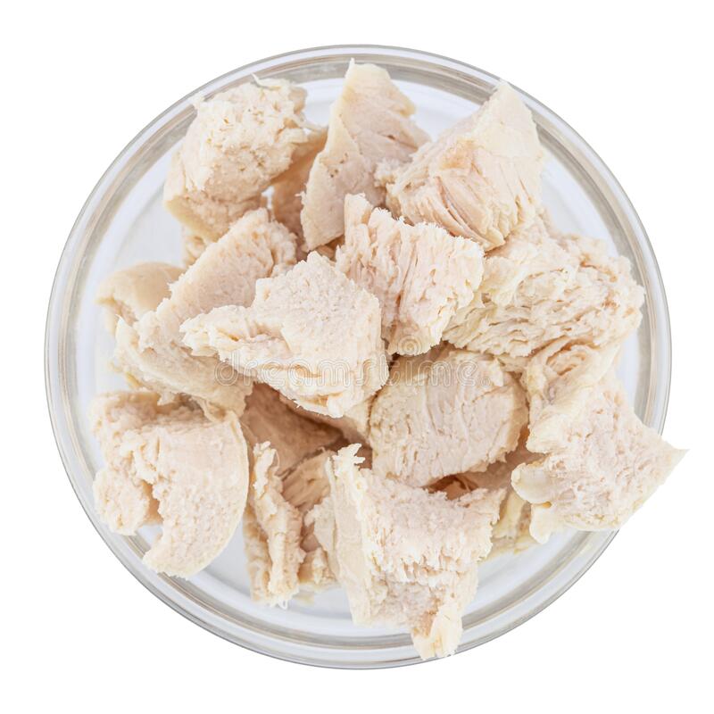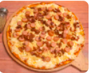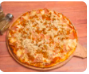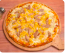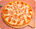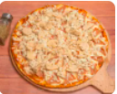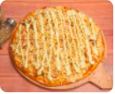 Pollo desmechado en salsa blanca, salchicha cazadora y pepperoni.