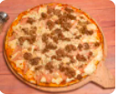 Carne de hamburguesa en trocitos, cebolla salteada y salami.