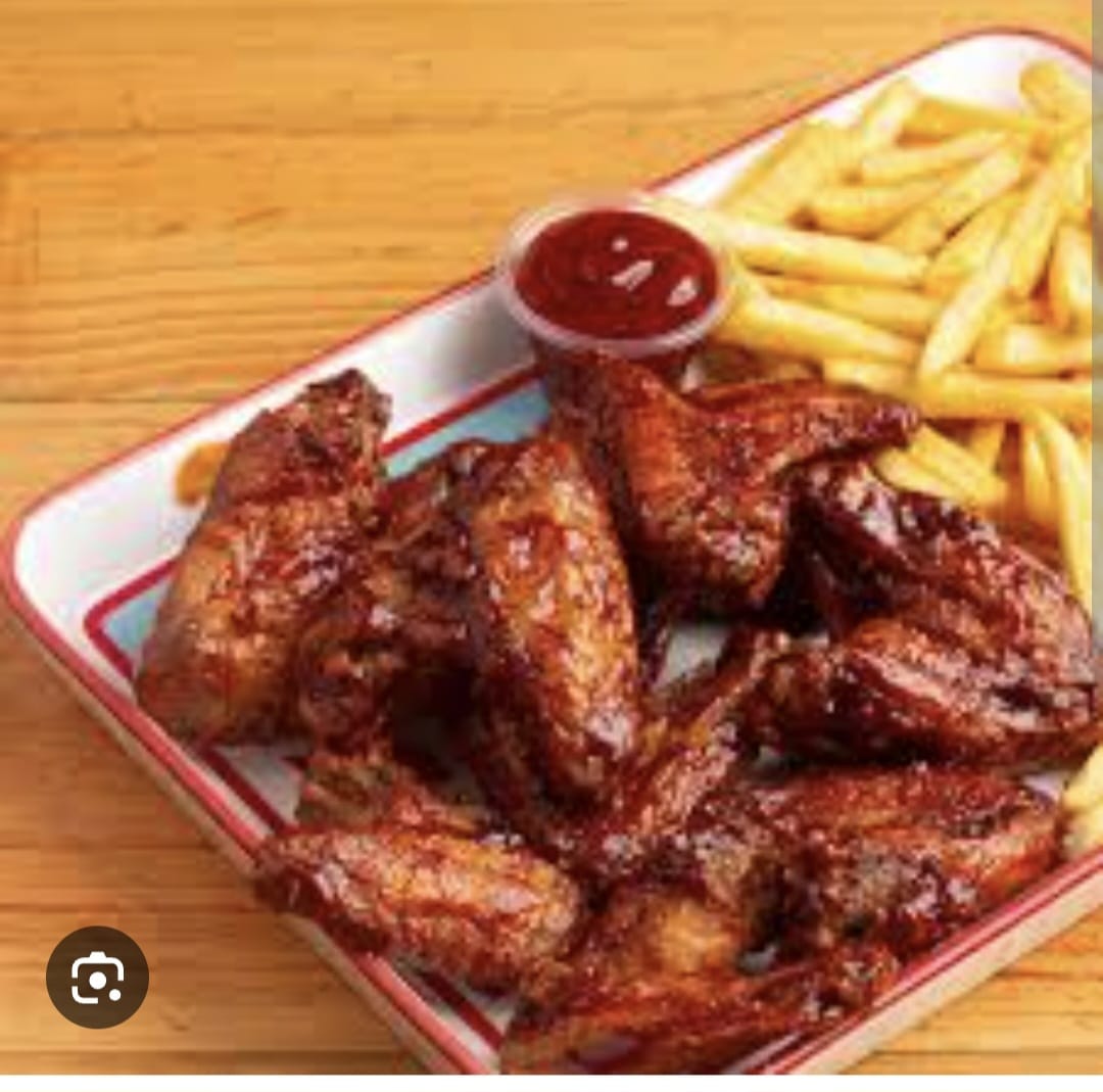 5 Alitas acompañadas de papas a la francesa.