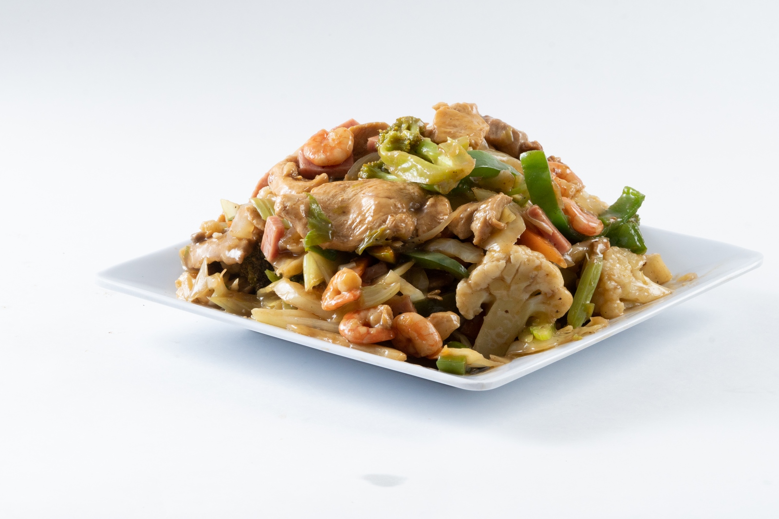 Verdura picado de: repollo, zanahoria, apio, pimentón, cebolla, brócoli, pollo, jamón, camarón, cerdo.