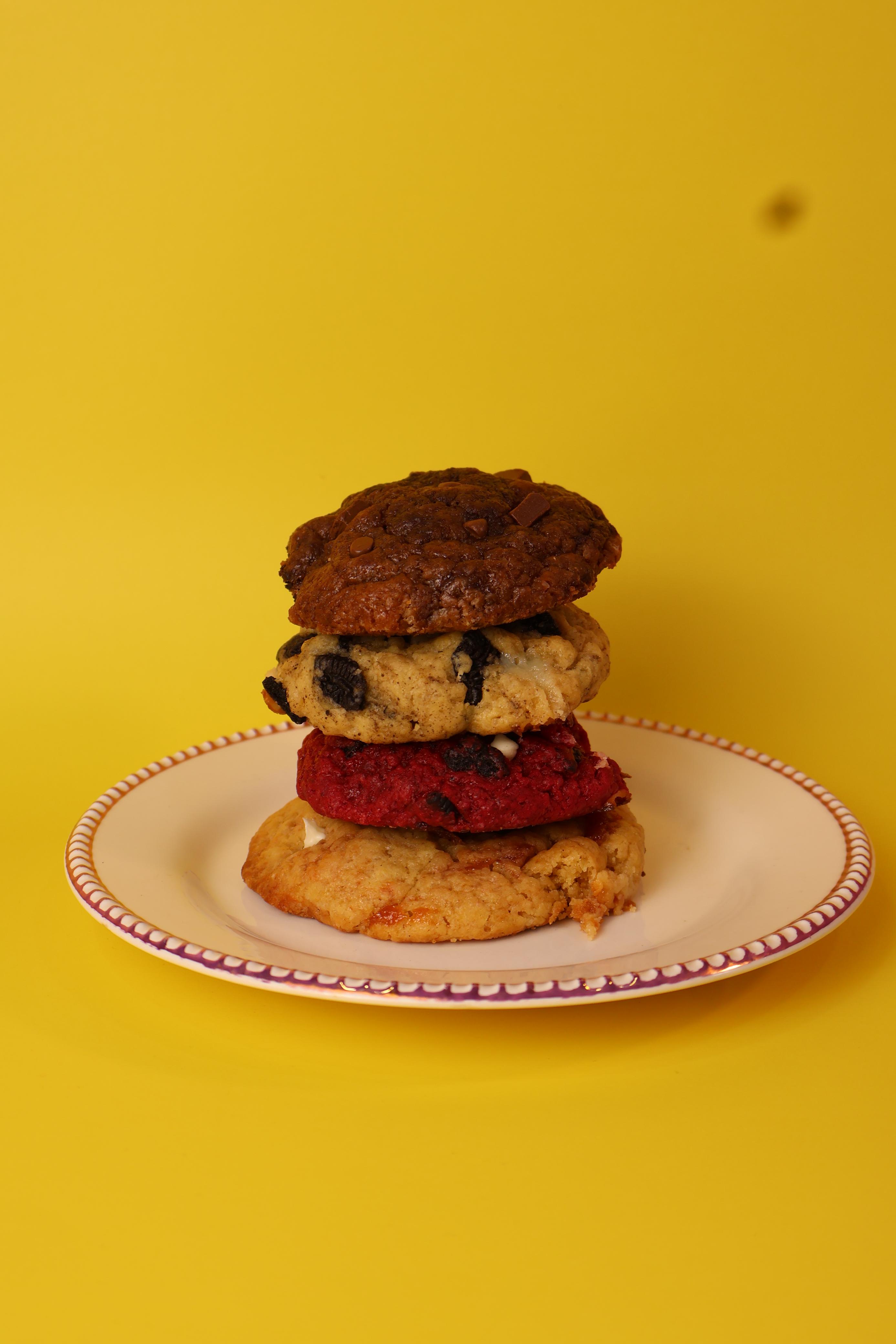 3 Uds de galletas, chocolate, red velvet y chips de chocolate todas suaves y rellenas.
