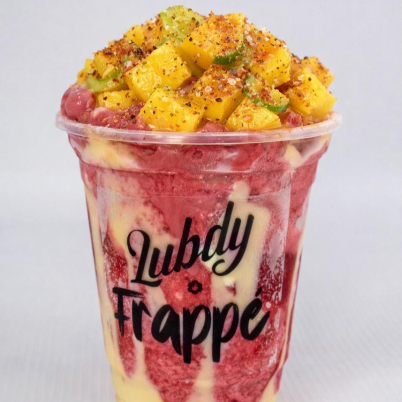 Granizado de corozo, leche condensada, topping de mango, limon sal pamienta y tajin.