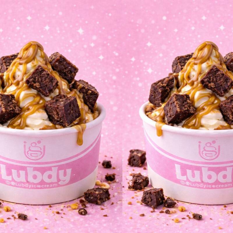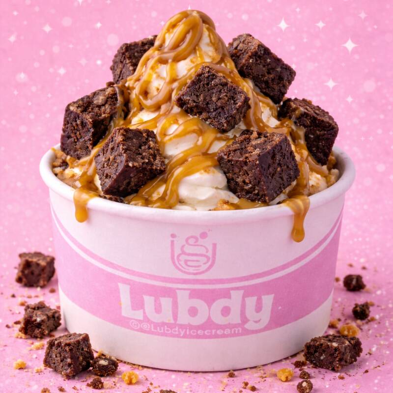 2 helados de 130 gr sin azucar sabor vainilla endulzados con alulosa 5 topping de brownie sin azucar acompañado de salsa de arequipe sin azucar