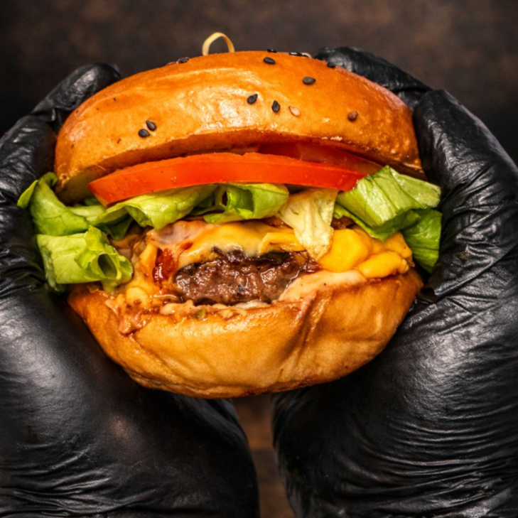 Pan brioche artesanal, carne premium 150g, queso americano, lechuga romana, tomate, cebolla morada, salsa de la casa - Papas francesas (Clásica, jugosa y equilibrada.)