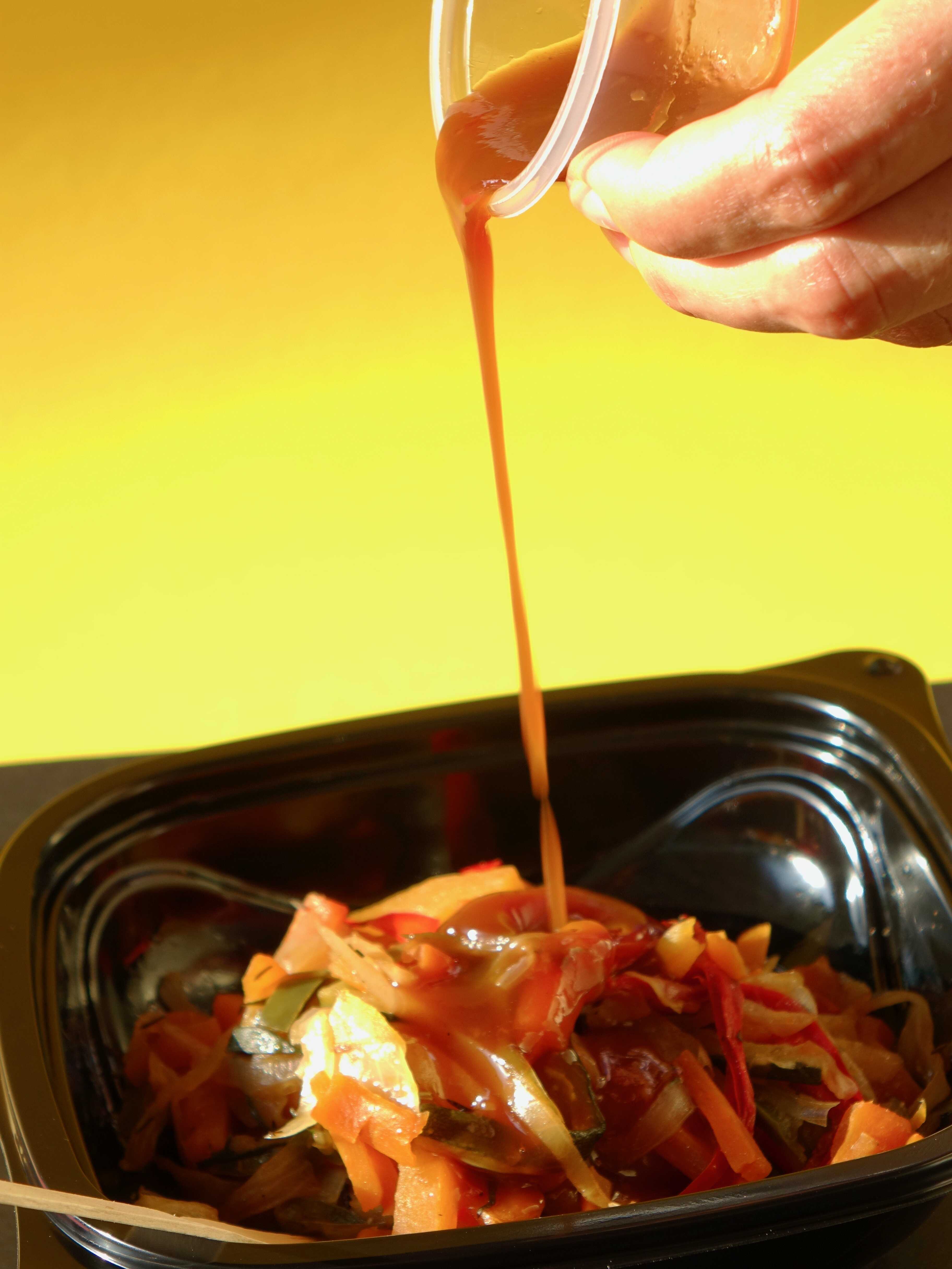 Vinagre de arroz, salsa de soja y kétchup.