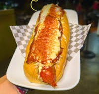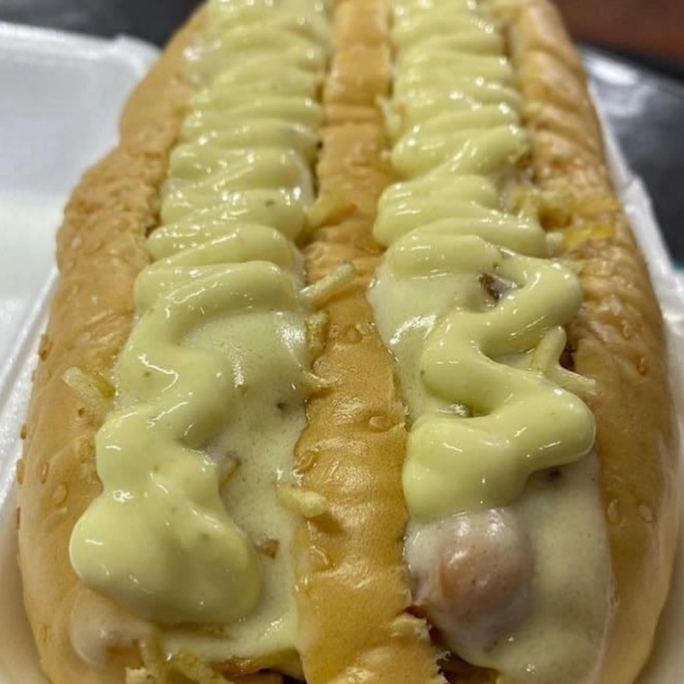 ¡Super gratinado!, pan de mantequilla premium con salchicha Delichicks, lechuga, chongo, super gratinado en queso mozzarella, piña y nuestra deliciosa salsa de la casa. ¡El favorito de la casa!.