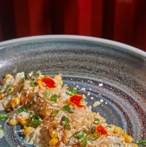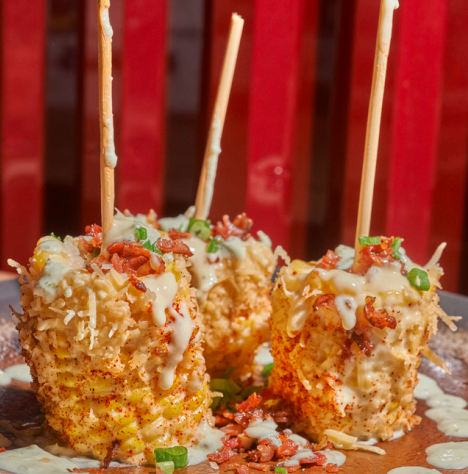 3 Trozos de nuestra mazorca americana bañadas en una mezcla de sour cream, crema de leche, queso parmesano, coronado con tocineta crispy y cebolla puerro.