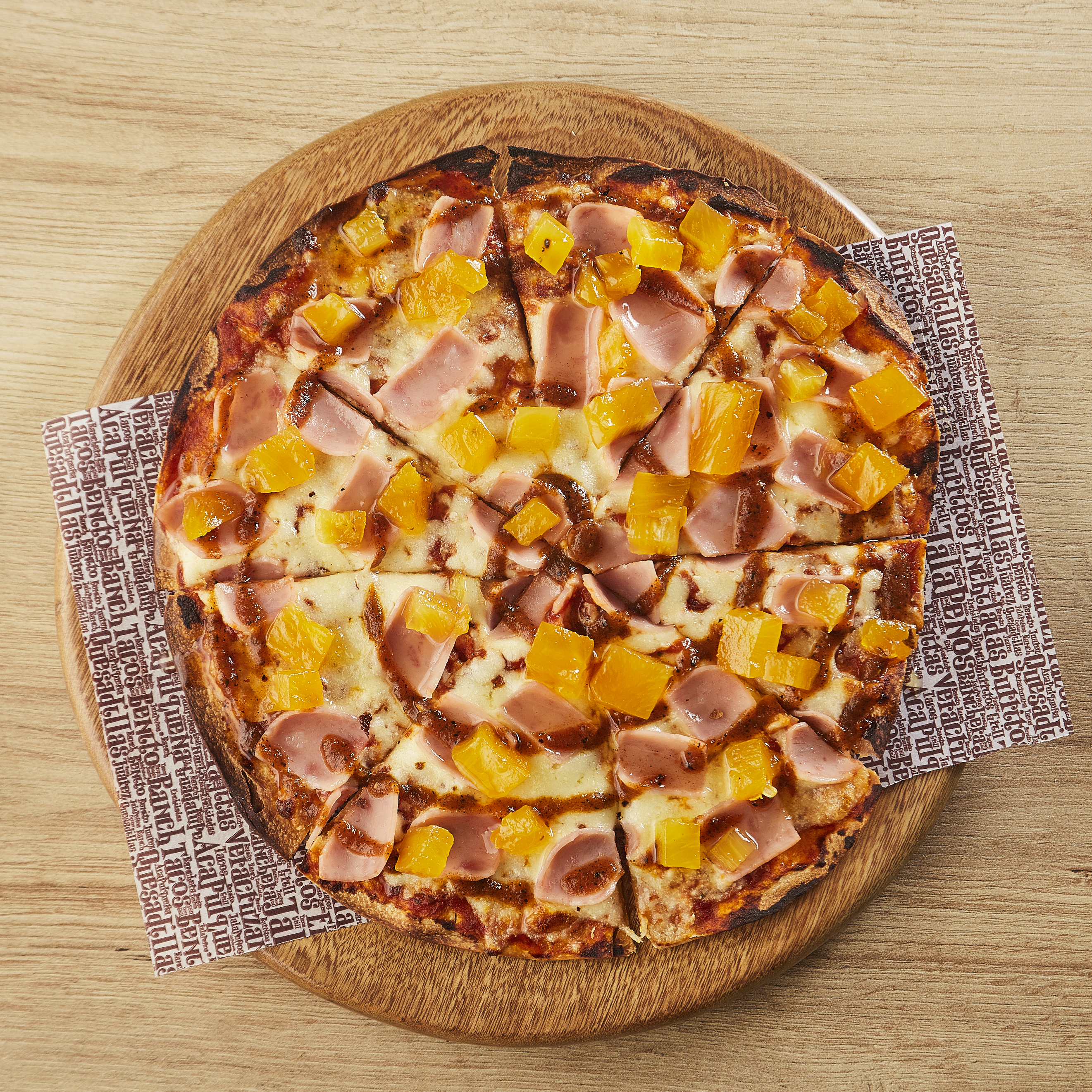 Nuestra exquisita hawaiana con jamón, piña, salsa ranchera y el queso fundido.