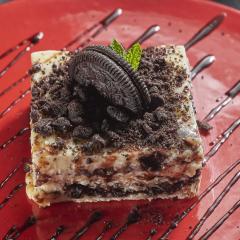 Tradicional postre preparado con capas de galleta, crema pastelera y galleta Oreo.