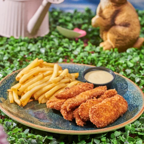 150 g De pollo crispy, acompañado de papas a la francesa.