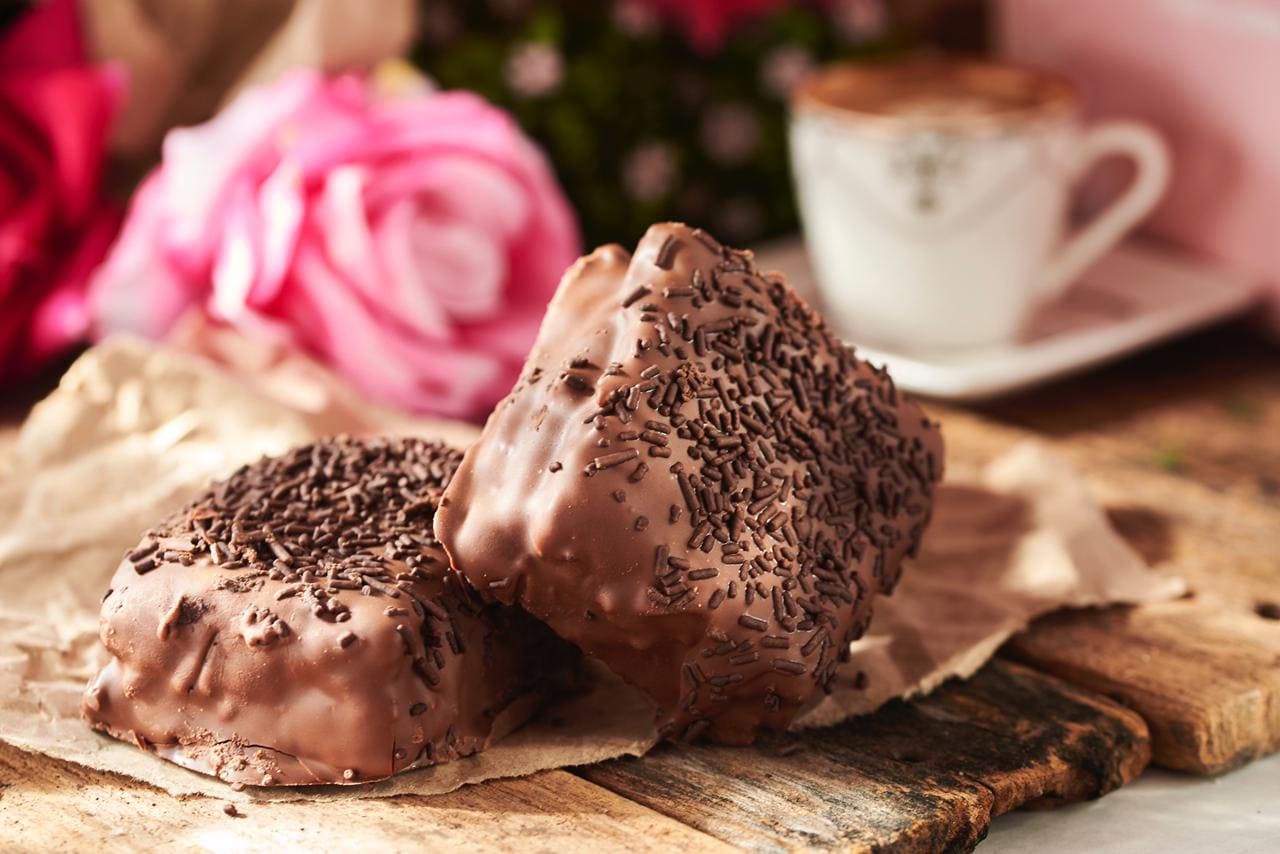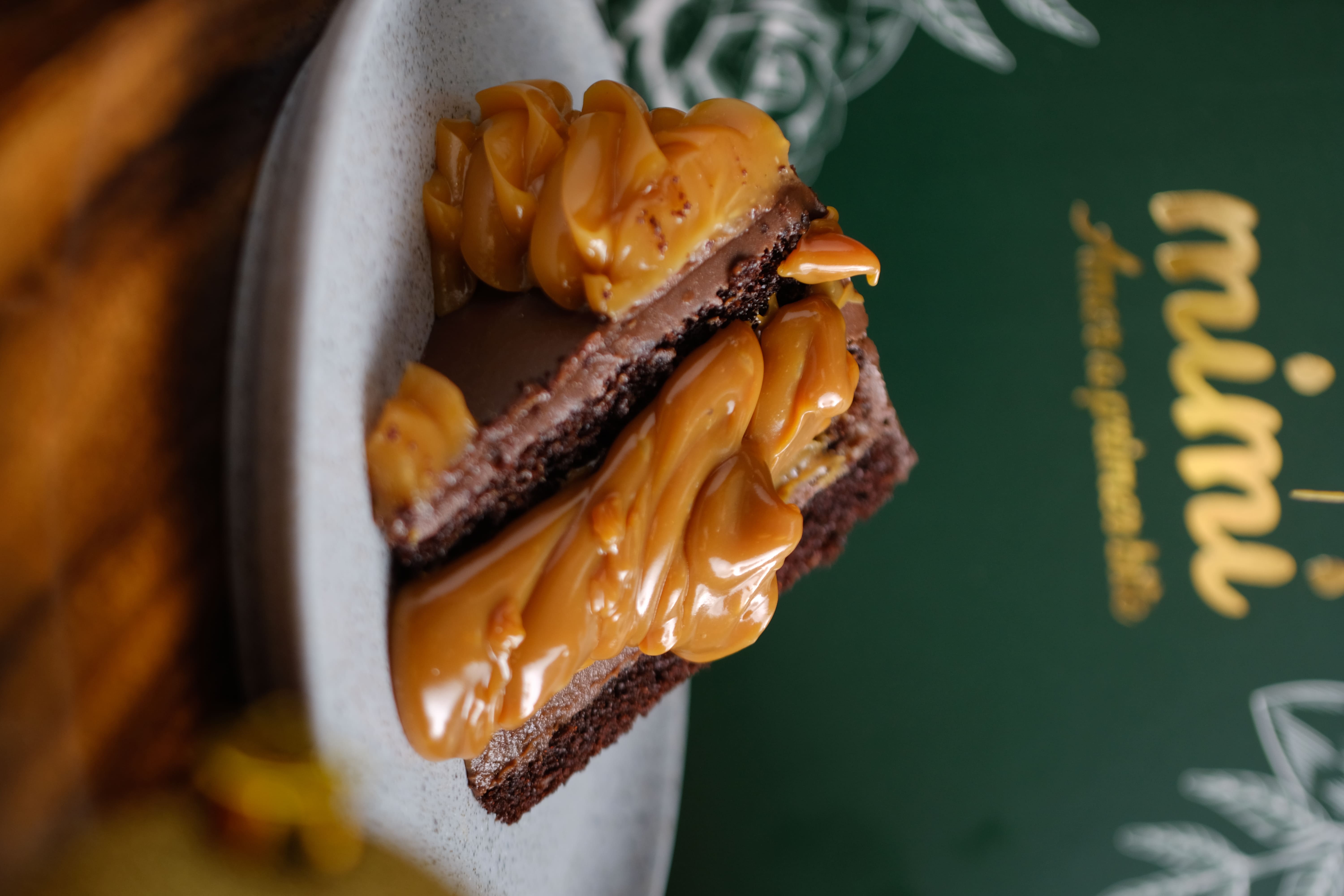 Brownie cubierto con una capa de chocolate repleta con cremoso arequipe.