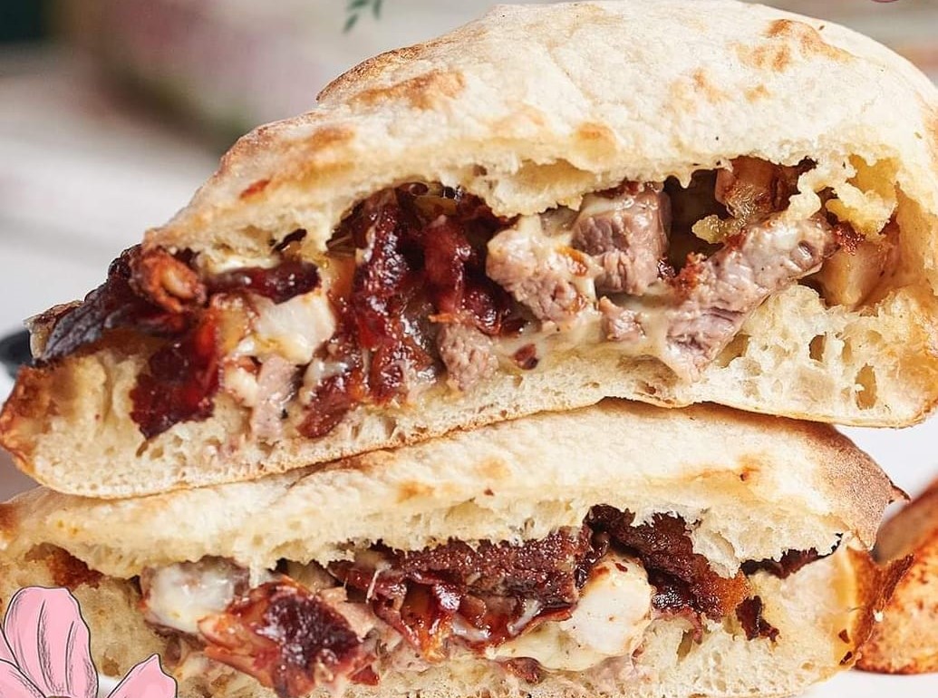 Sándwich lomo en finas lonjas, salteado con cebolla grille y tocineta, cubierto en queso mozzarella y cebolla crunchy.