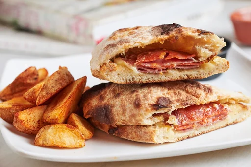 Sándwich chorizo español, pepperoni y salami italiano, acompañado de salsa spicy (ligeramente picante) y queso mozzarella.