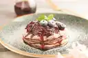Pancakes de arándanos cubierto con syrup de arándanos.