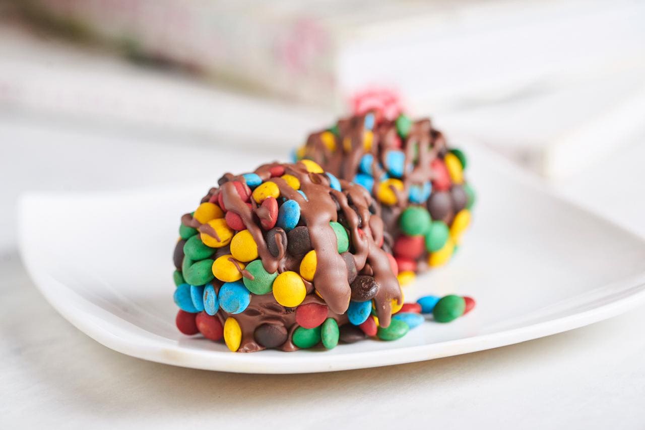 Trufa de brownie y mini m&m's.