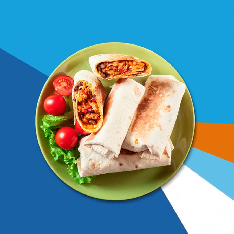 2 deliciosos burritos, hechos a base a tortilla blanda, rellenos de carne en salsa chipotle algo picante, lechuga y suero.
