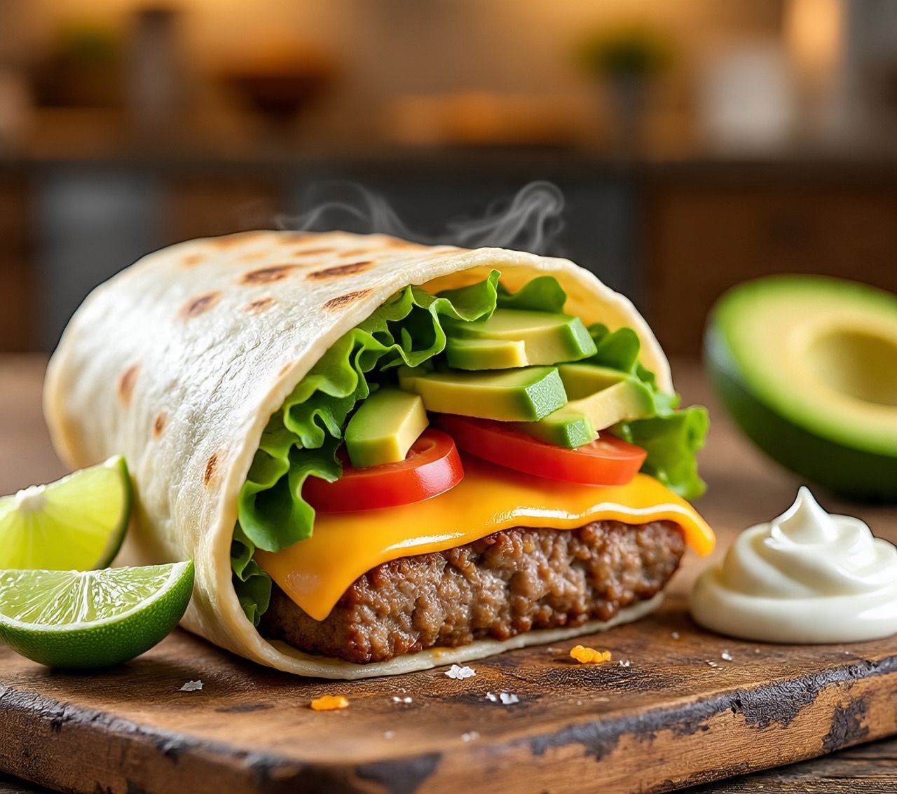 2 deliciosas tortillas blandas, acompañadas de carne molida, lechuga, tomate, cebolla, guacamole y picante y nuestra deliciosa salsa chipotle