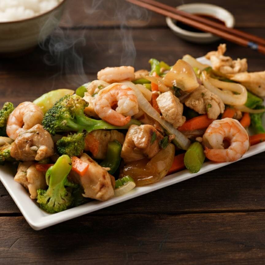 Vegetales picada con trocito de pollo, jamón, camarón y cerdo.