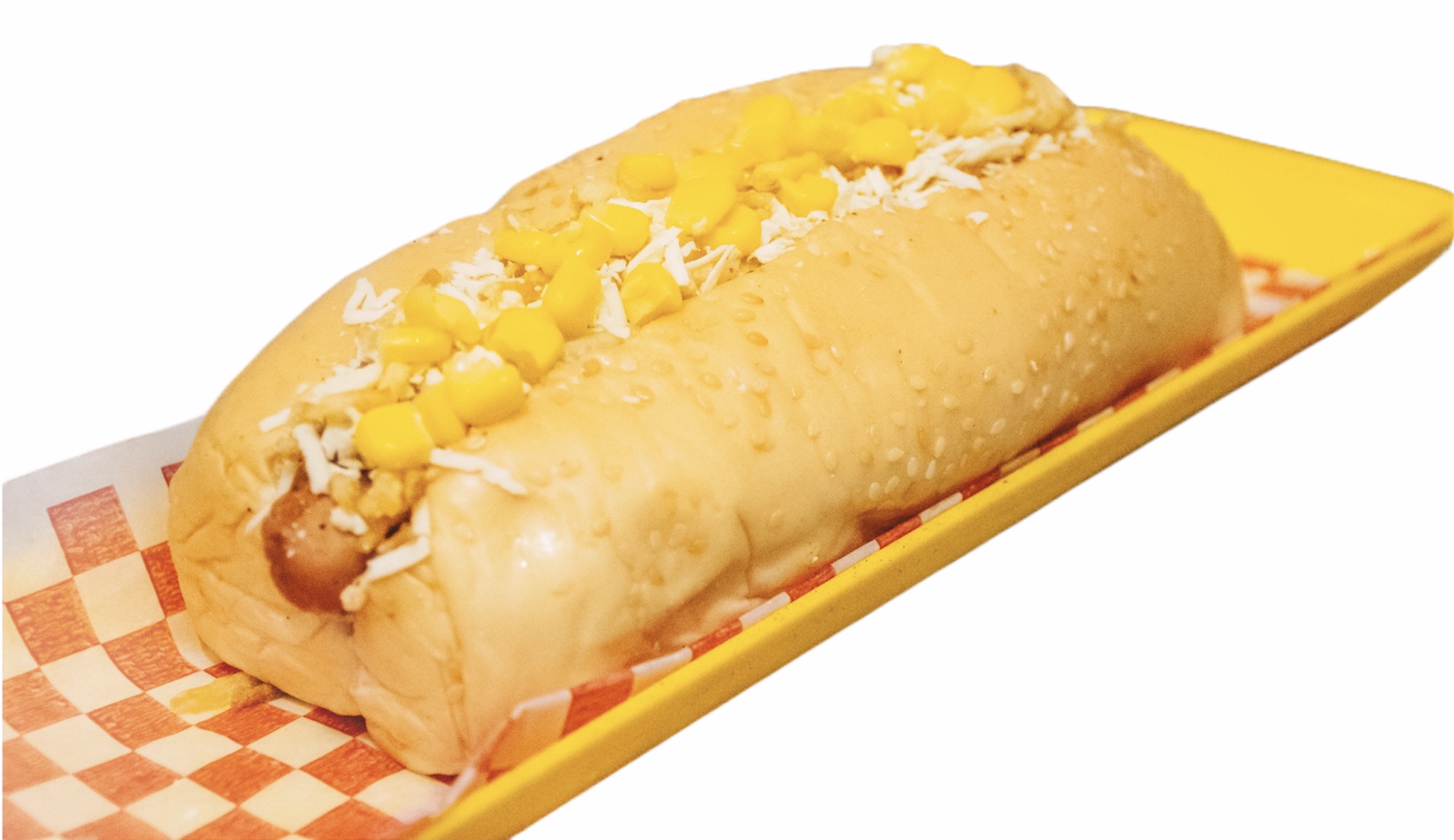 Salchicha de pavo, queso costeño, lechuga, chongo, papas, maíz, tártara y salsa de queso cheddar.