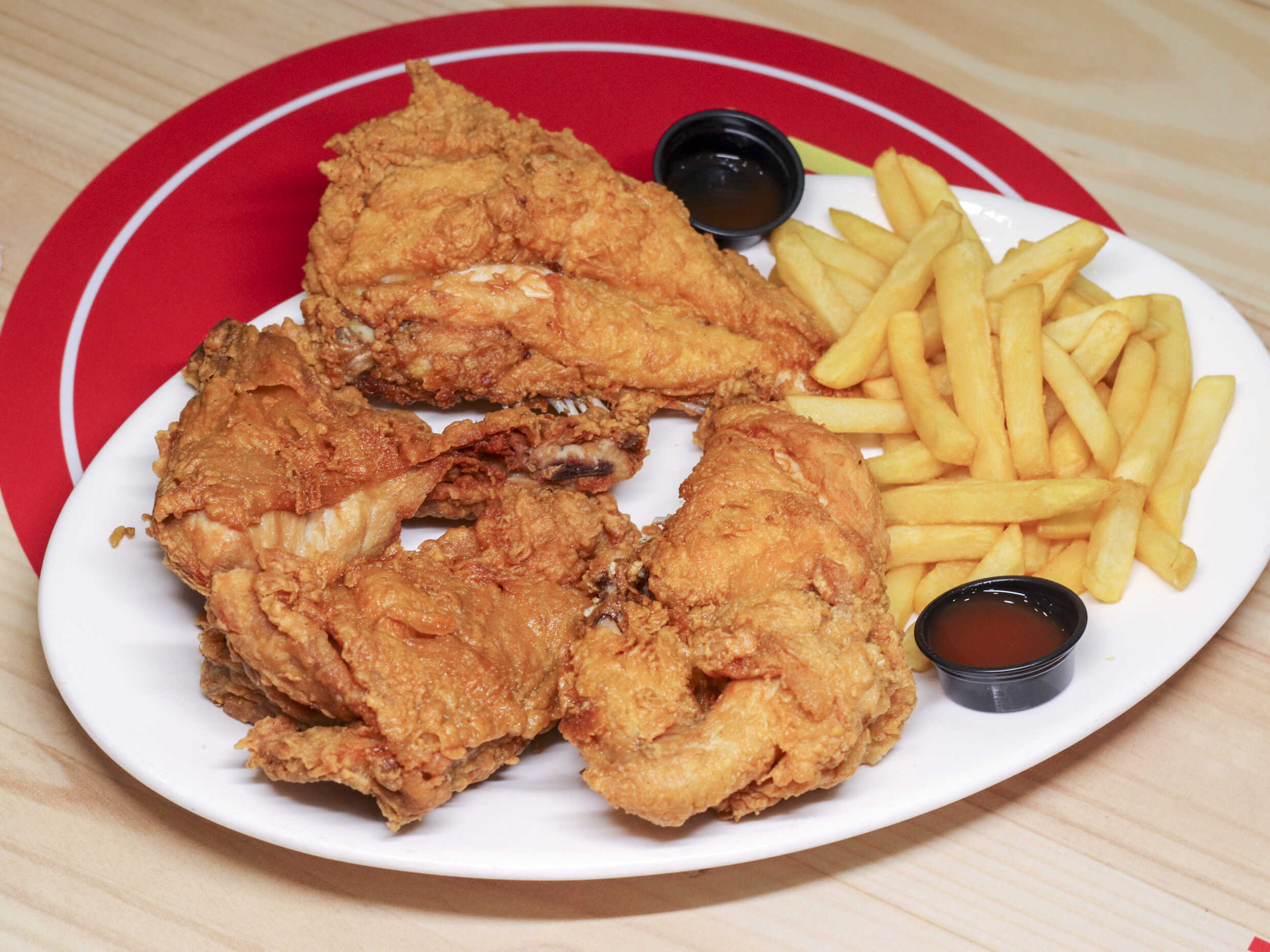4 Presas de pollo a la broaster acompañado de papas a la francesa