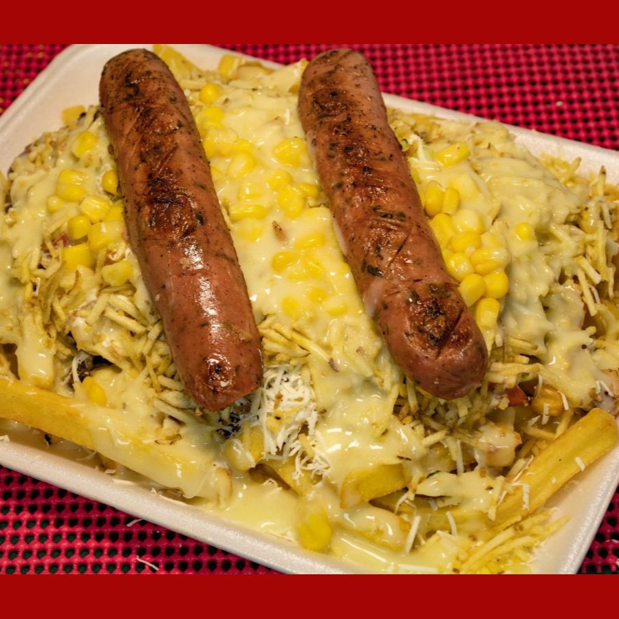 Trae : Salchicha, Papas Fritas, Salsas, Queso Costeño, Maiz, Lechuga, Chongo.