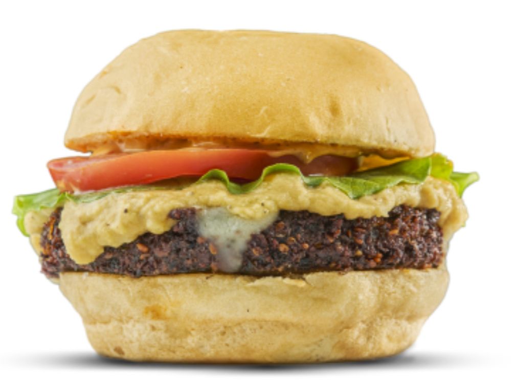 Proteína falafel de 120 gramos, servido en pan brioche, acompañado de lechuga romana, tomate chonto, hummus cremoso y suave mayonesa de ajos rostizados.