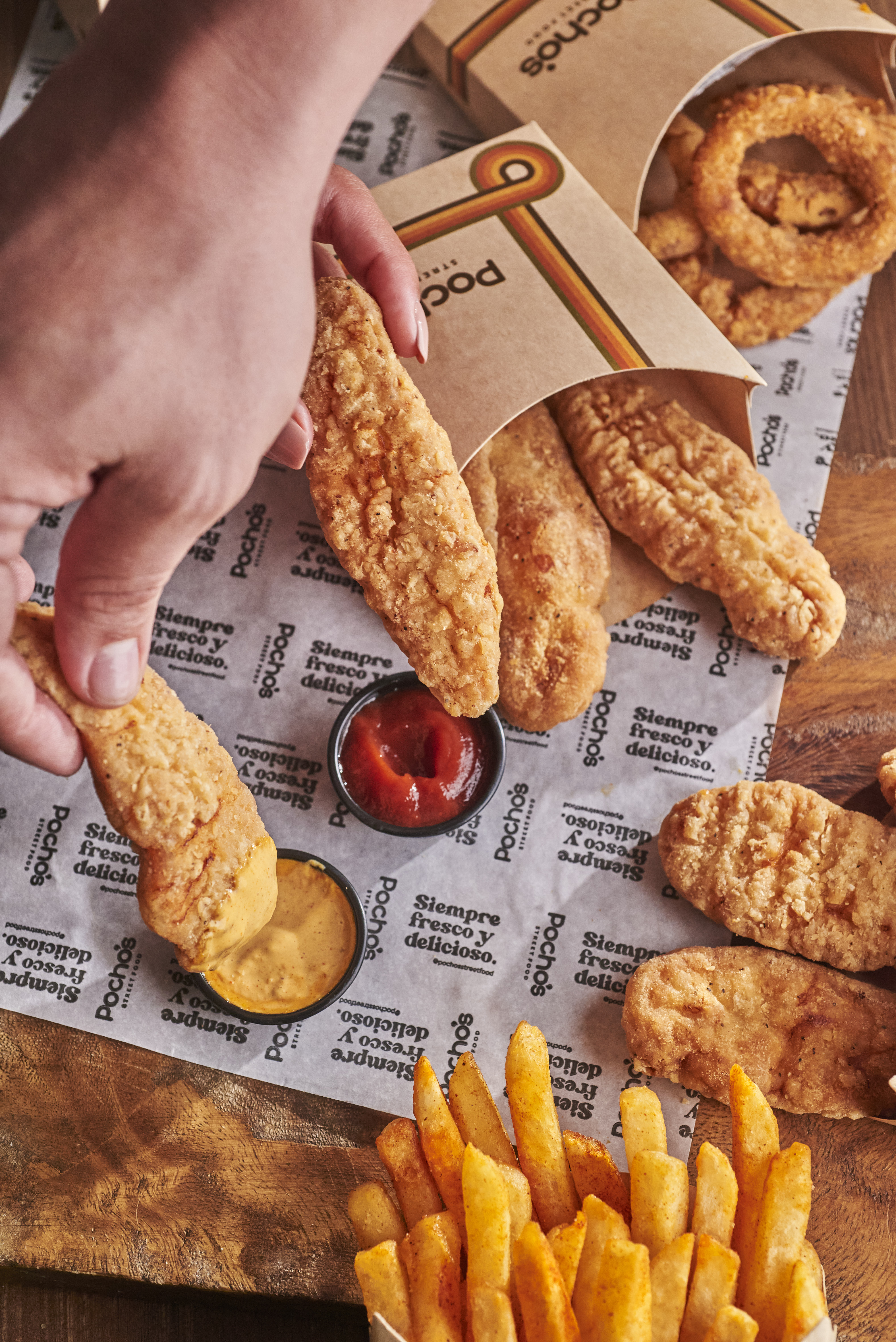 Pan de la casa, carne 100% de res, tocineta ahumada, queso cheedar, verduras frescas y Salsa Pocho's.