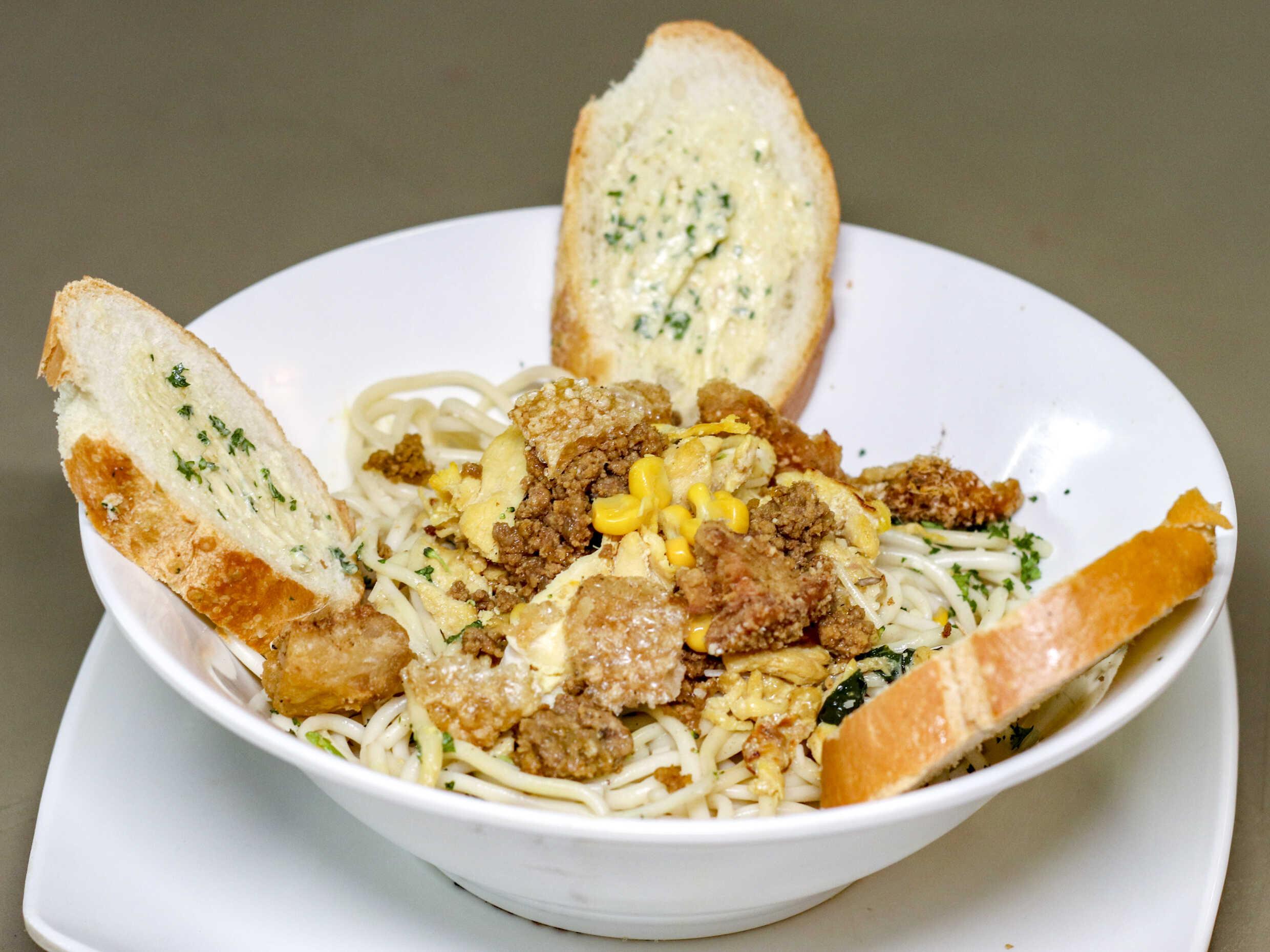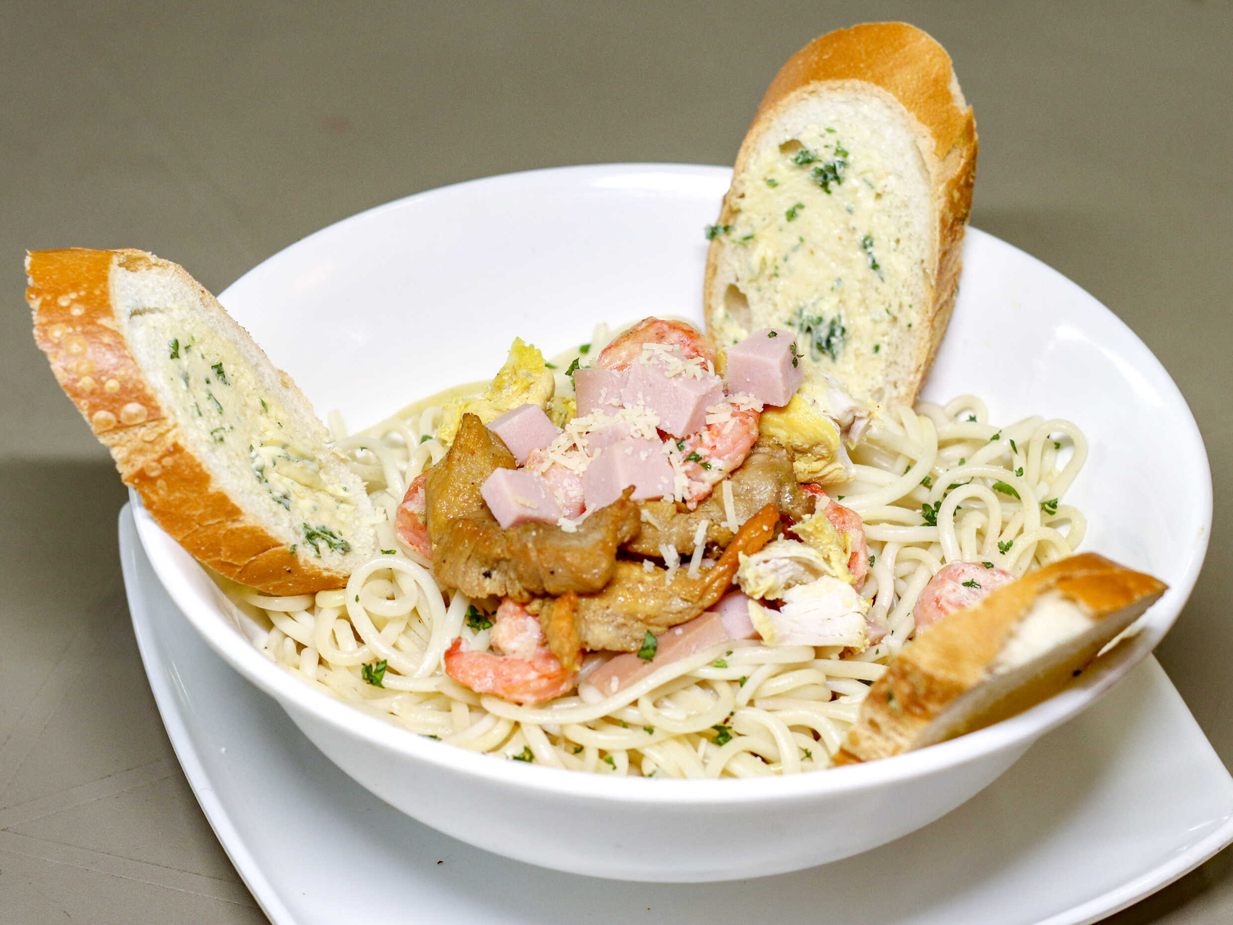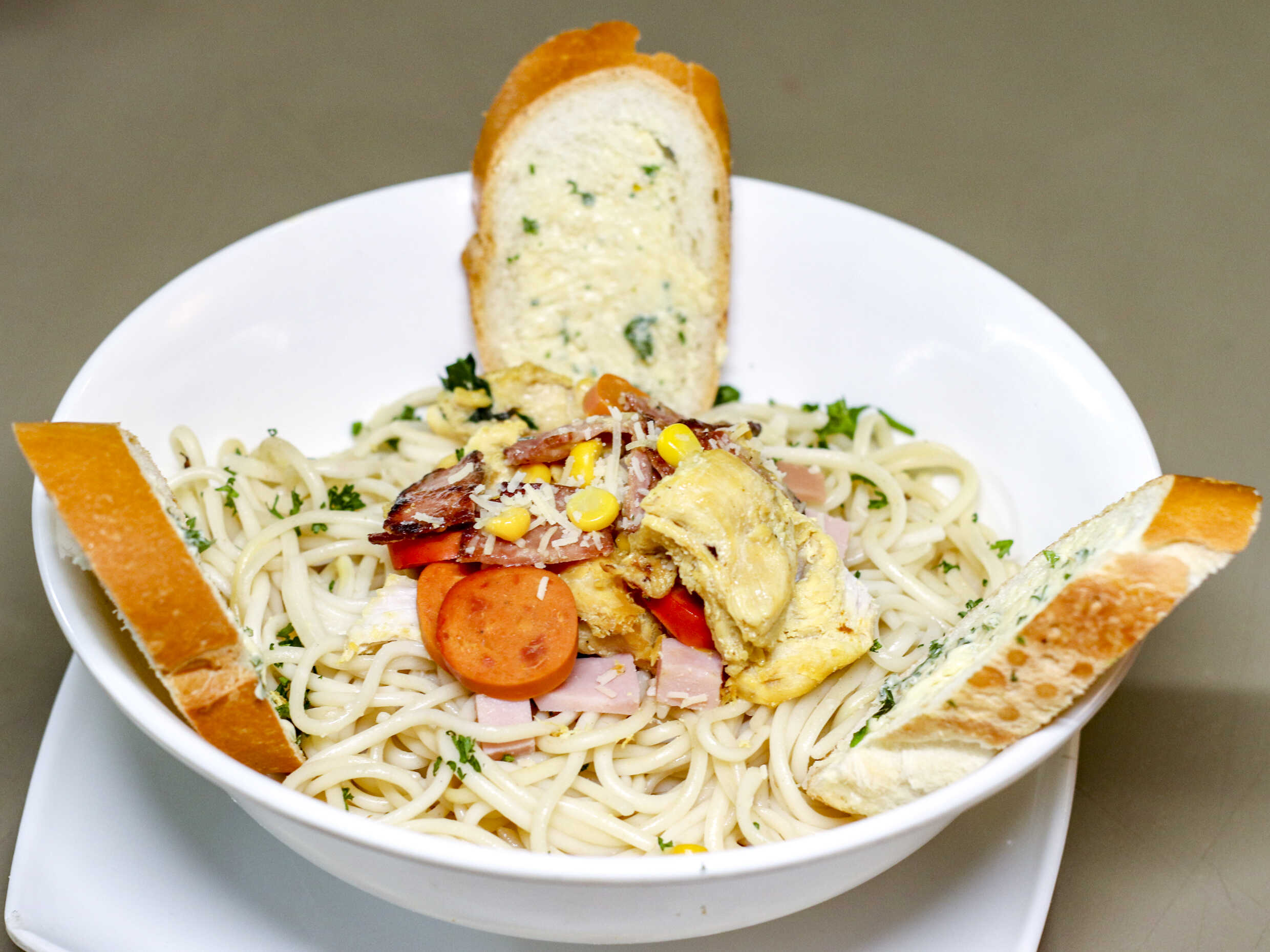 Jamón, chorizo antioqueño, tocineta ahumada, pollo, maíz, cebollín chino.