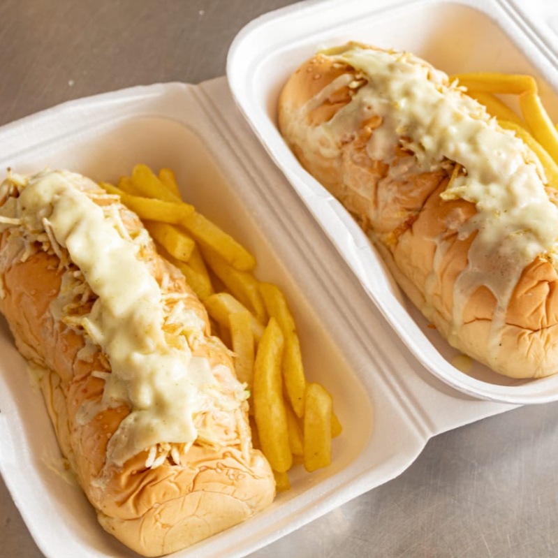 Perro gratinado de pollo servido en un suave pan chongo, con una salchicha de pollo jugosa como base, cubierta con abundante queso mozzarella derretido al horno que aporta cremosidad y sabor. Todo se complementa con la exclusiva salsa de la casa, que le da un toque único y delicioso en cada bocado. Ideal para quienes buscan una opción diferente y sabrosa.