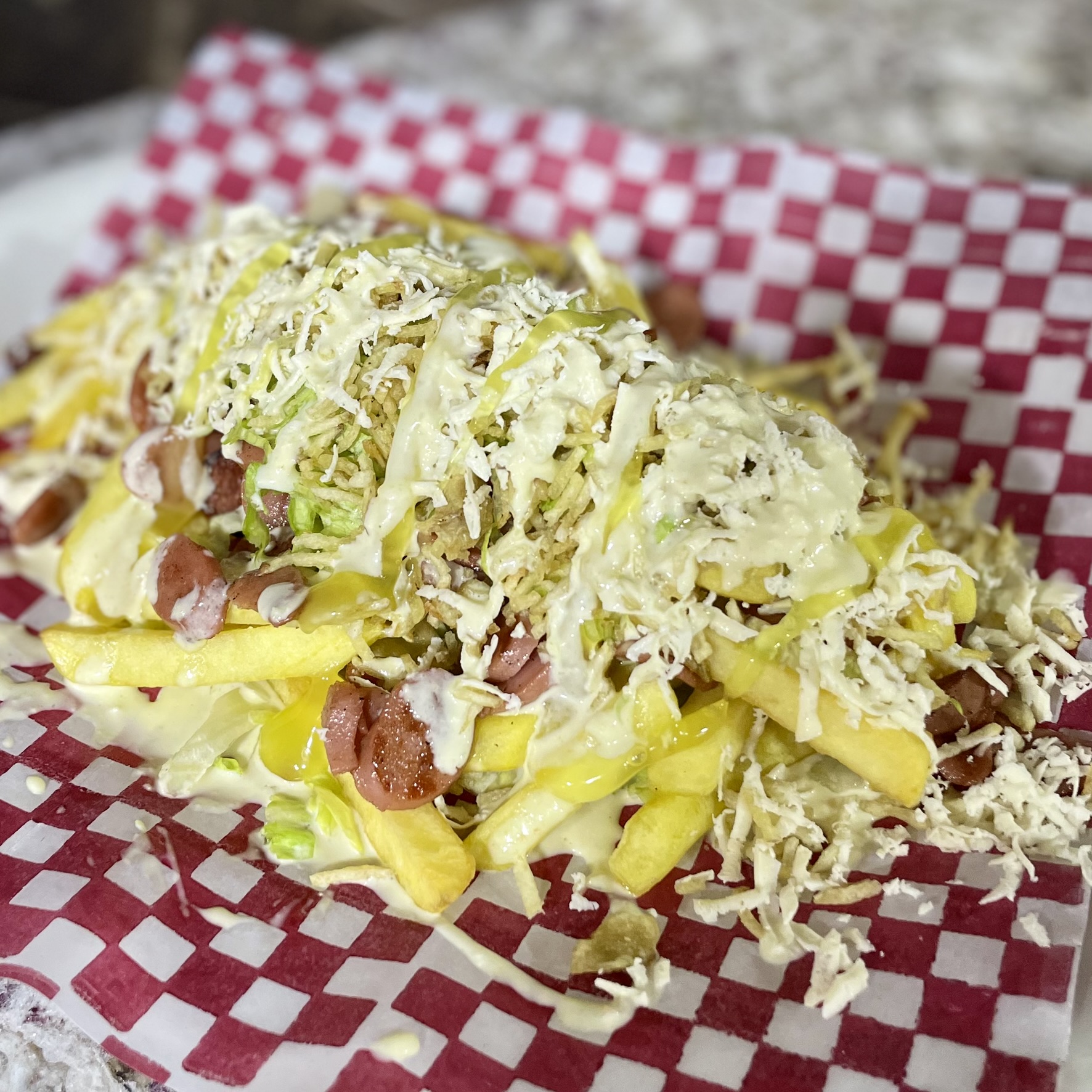 SALCHICHA, PAPAS A LA FRANCESA, LECHUGA, PAPA CHONGO, QUESO CRIOLLO, TARTARA Y PIÑA
