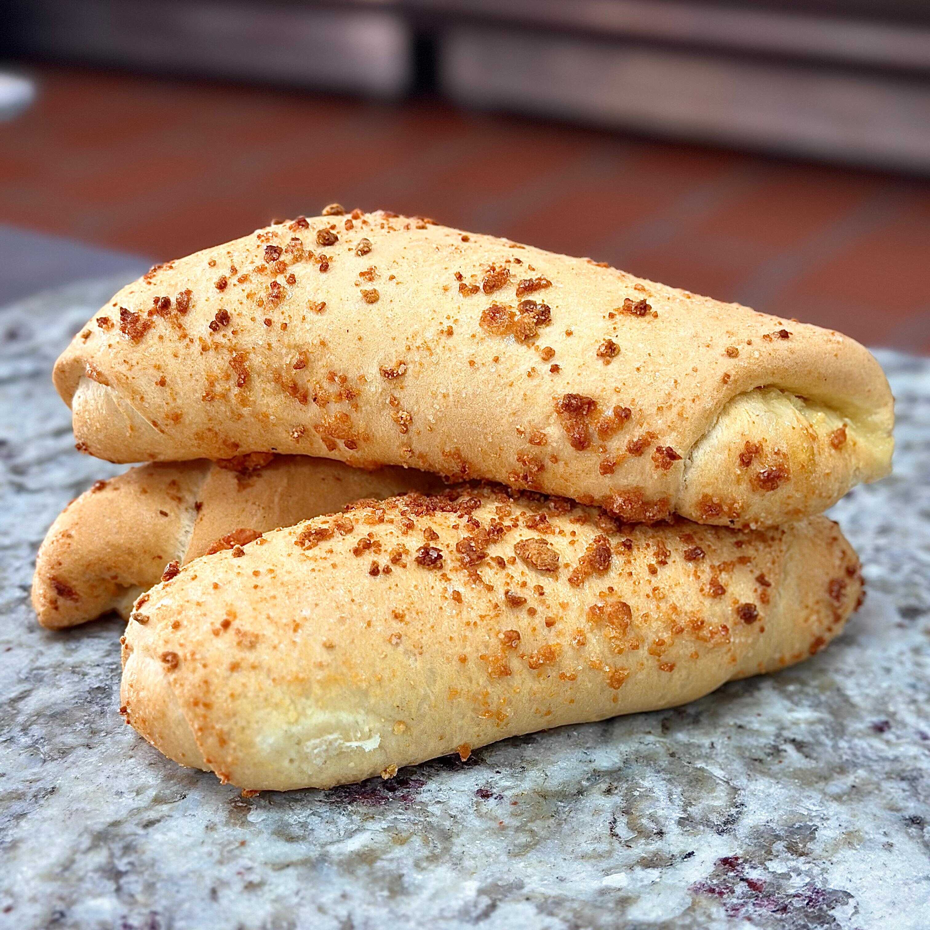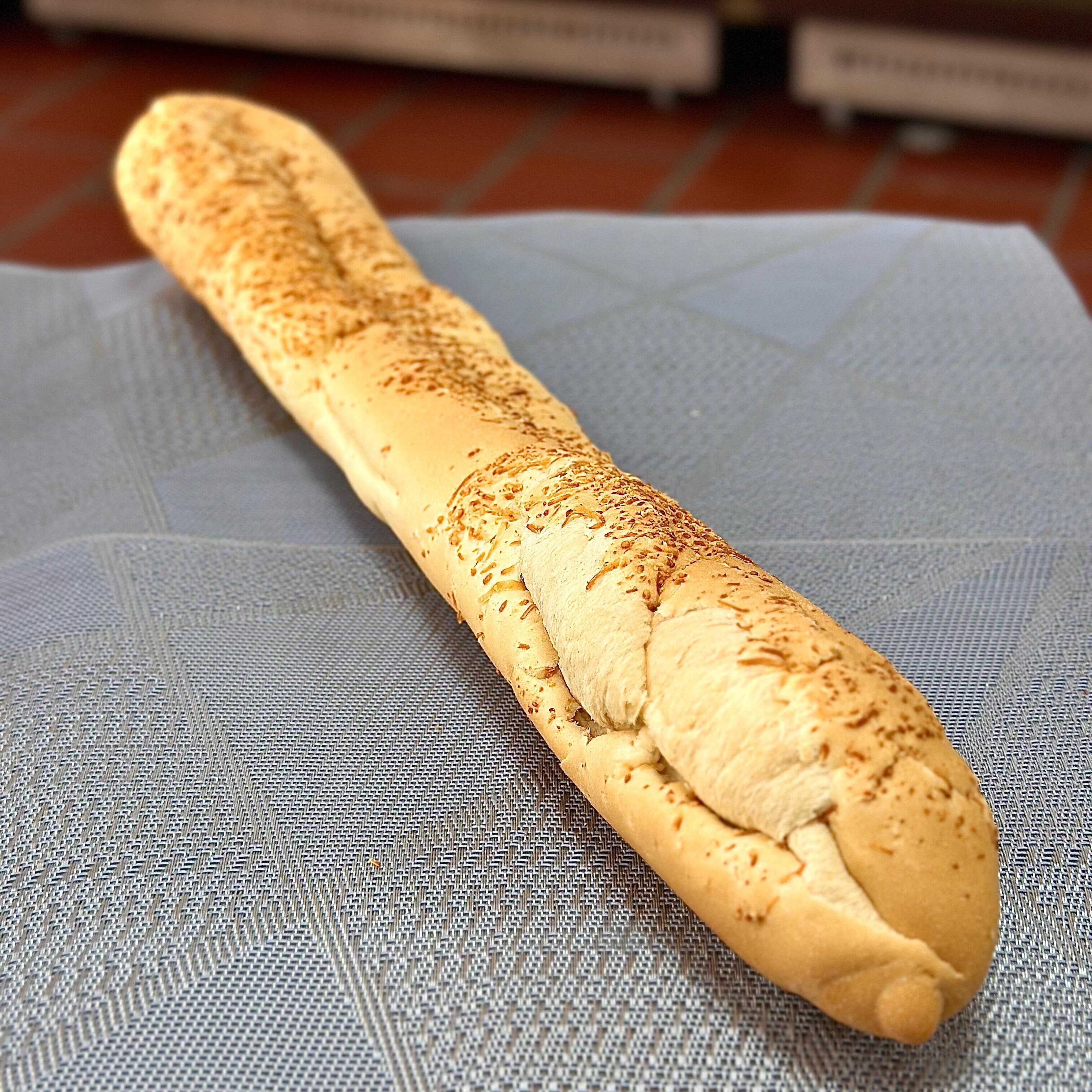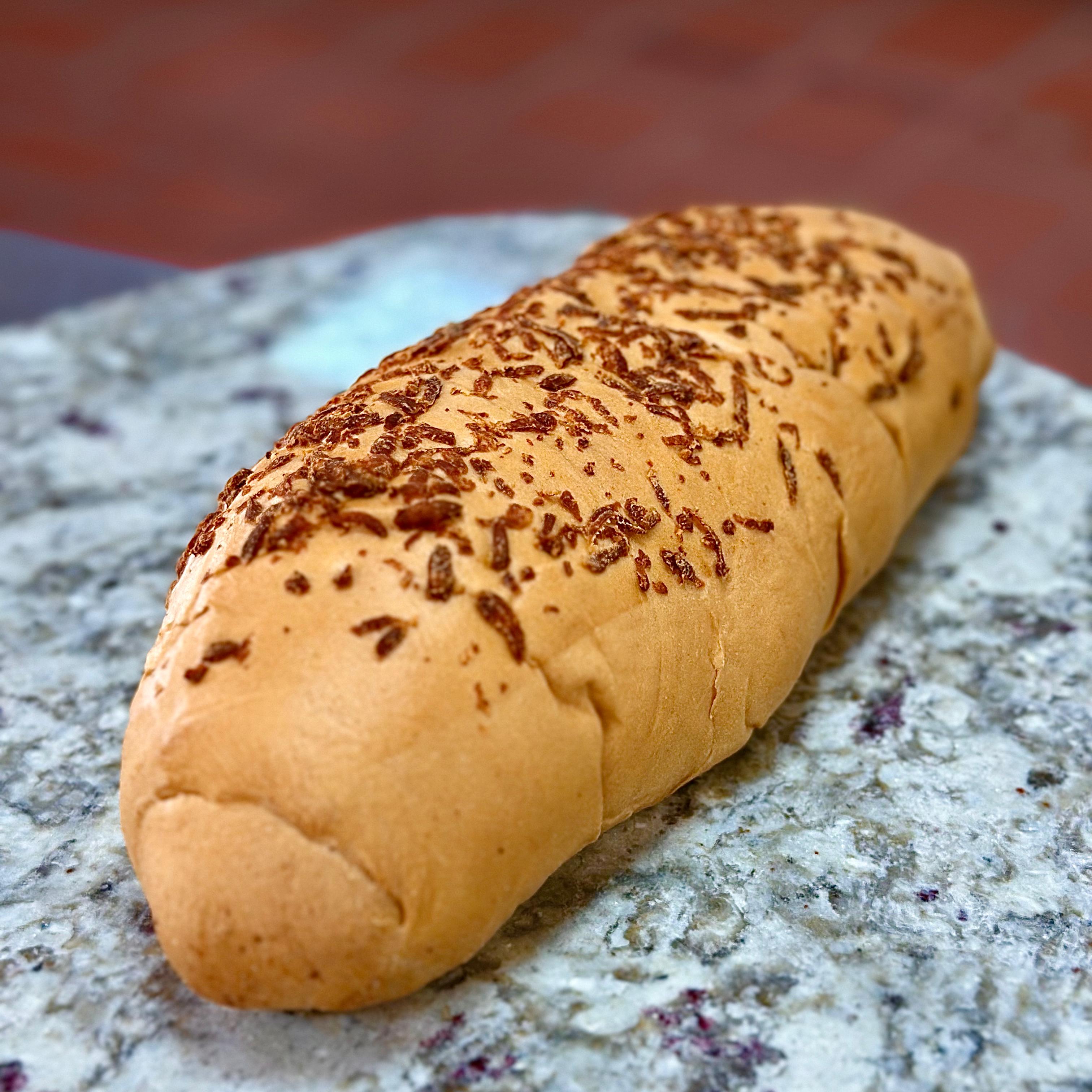 1 und de Pan bañado en una crema de 3 quesos relleno con bocadillo.
