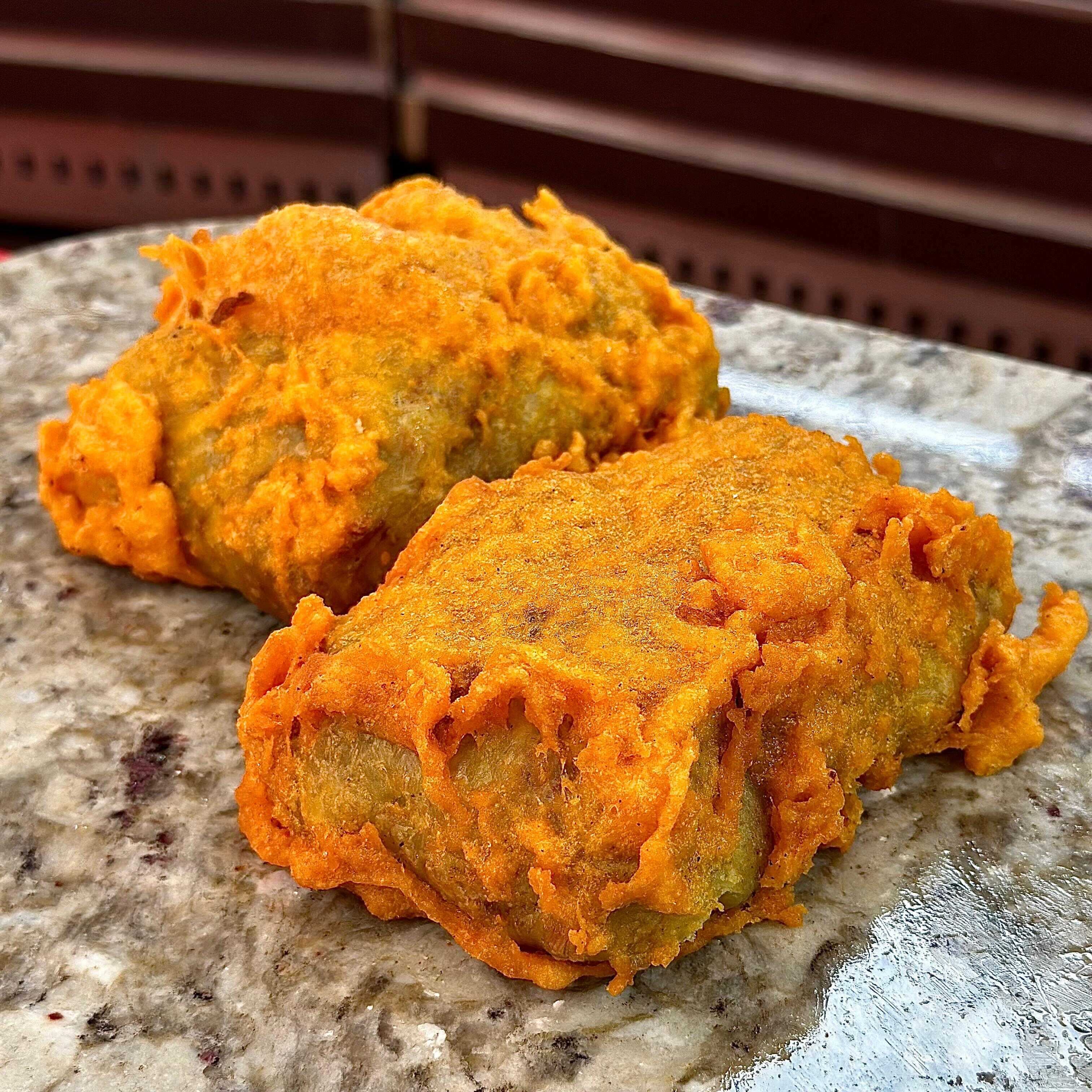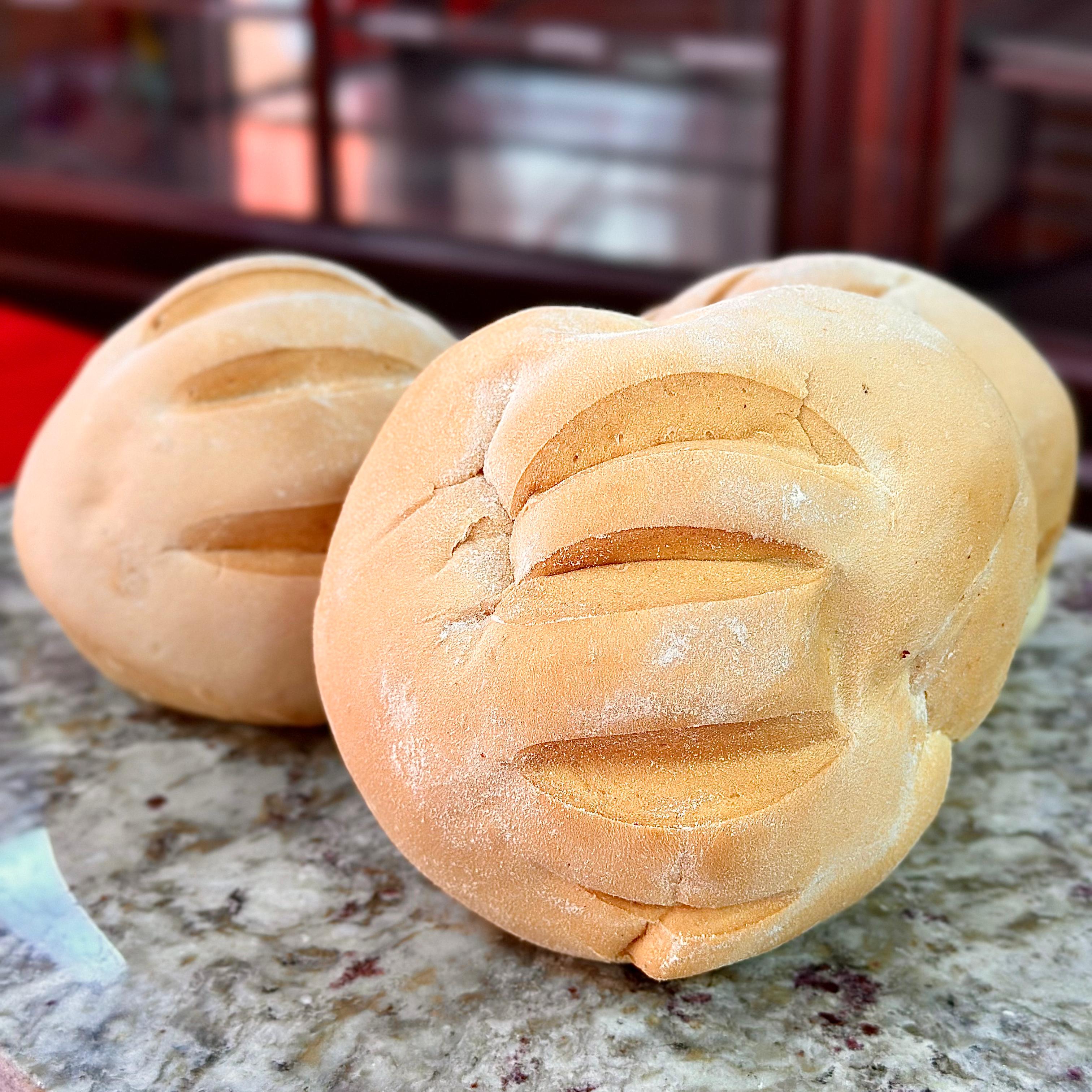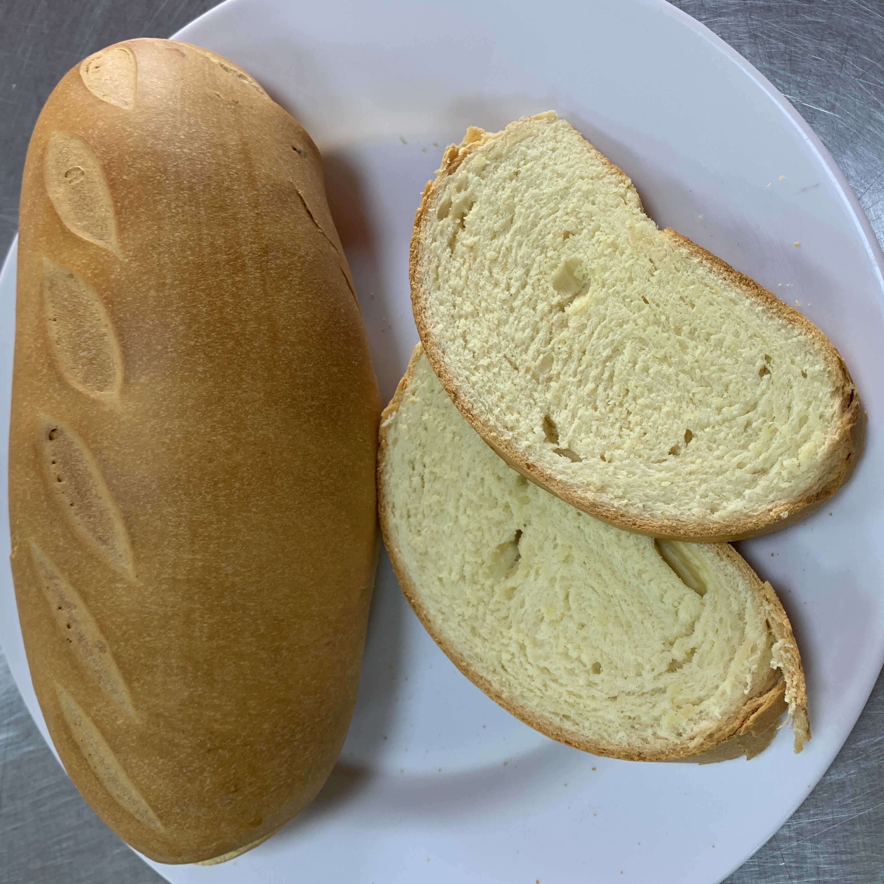 1 und de Pan bañado en una crema de 3 quesos relleno con bocadillo.