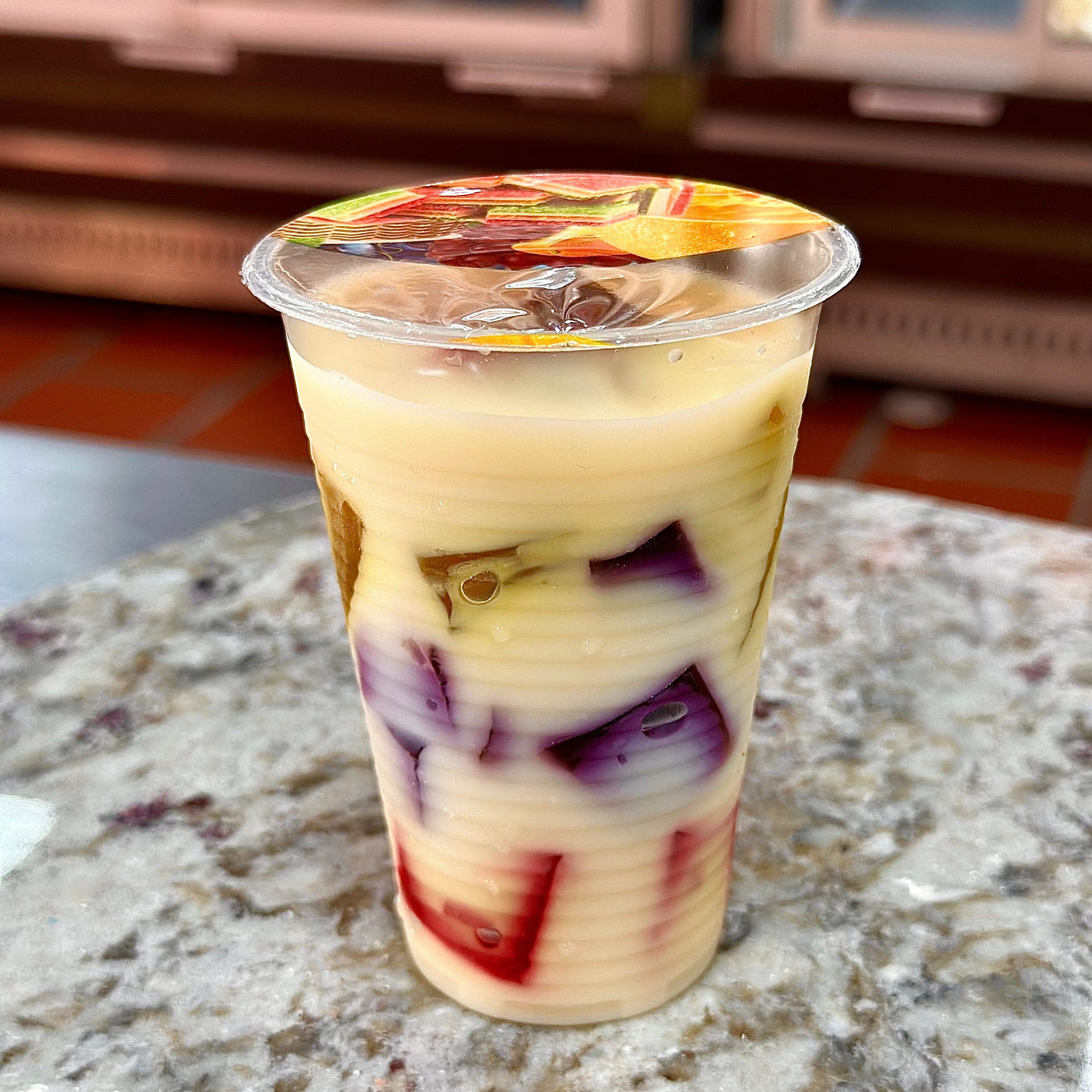 1 BUÑUELO DE AREQUIPE, 1 BUÑUELO DE CHOCOLATE, 1 BUÑUELO DE BOCADILLO, 1 BUÑUELO DE FRUTOS AMARILLO, 1 BUÑUELO DE LECHERITA CON LECHE EN POLVO Y 1 BUÑUELO DE MOZARELLA